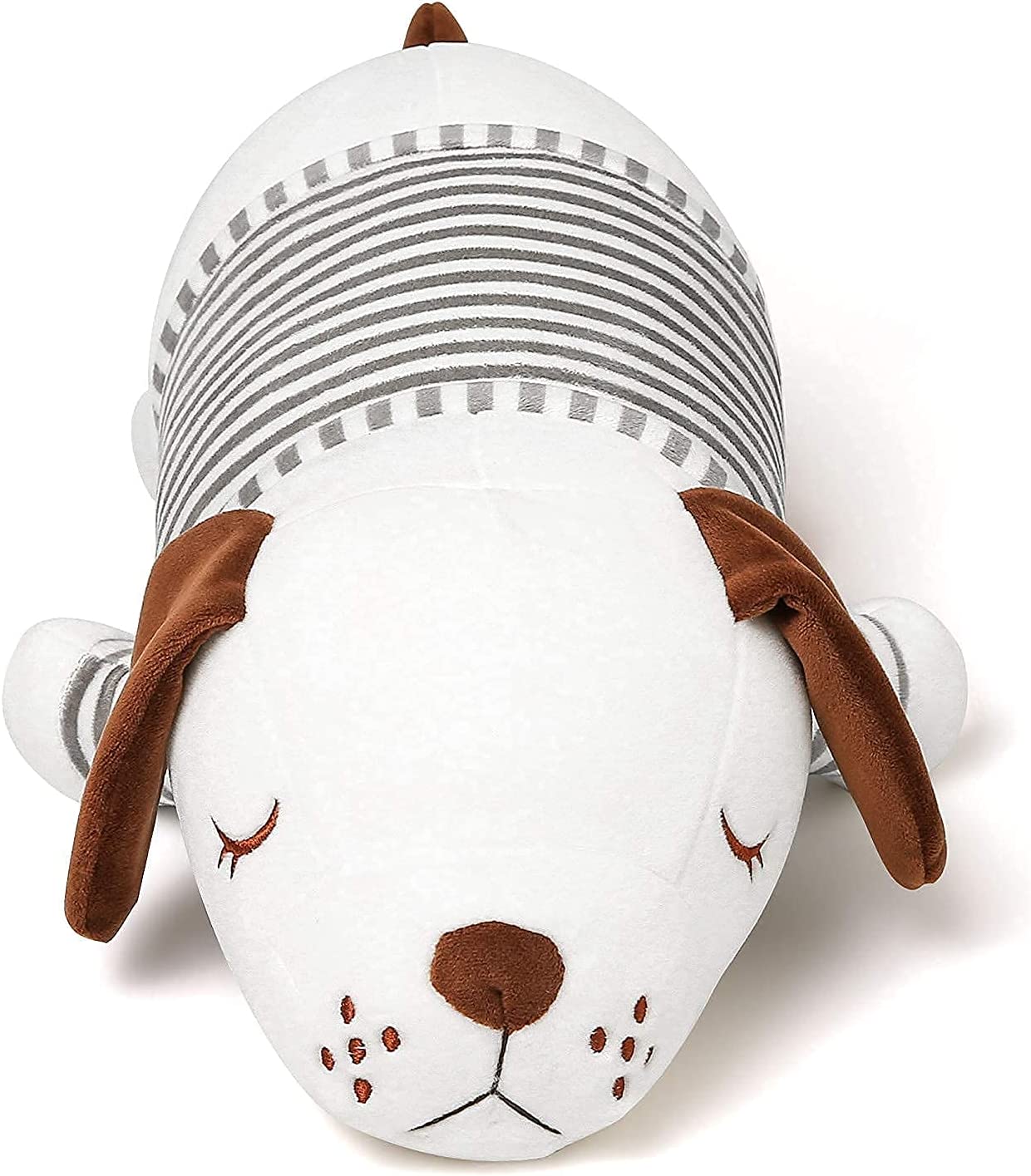- THE PUPPY HAS EMBROIDERED PAW PRINTS AND EYES. And, the tummy is chubby and cuddly. it is perfect for a cuddle.