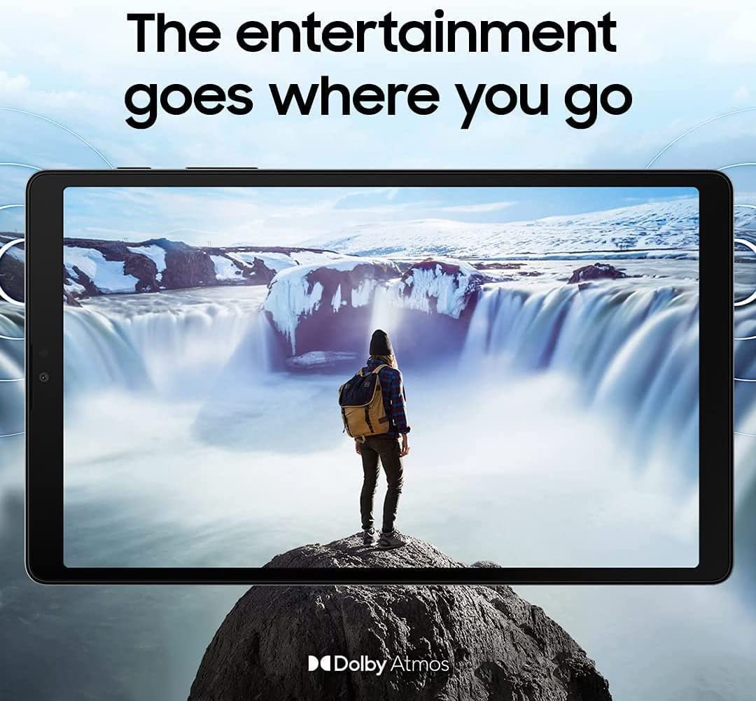With its compact 8.7-Inch screen, slim design, and sturdy metal frame, Galaxy Tab A7 Lite is perfectly sized for entertainment on the go. It's easy for everyone in the family to carry, whether you're traveling from the living room to your beach vacation, or wherever else you want to take it.