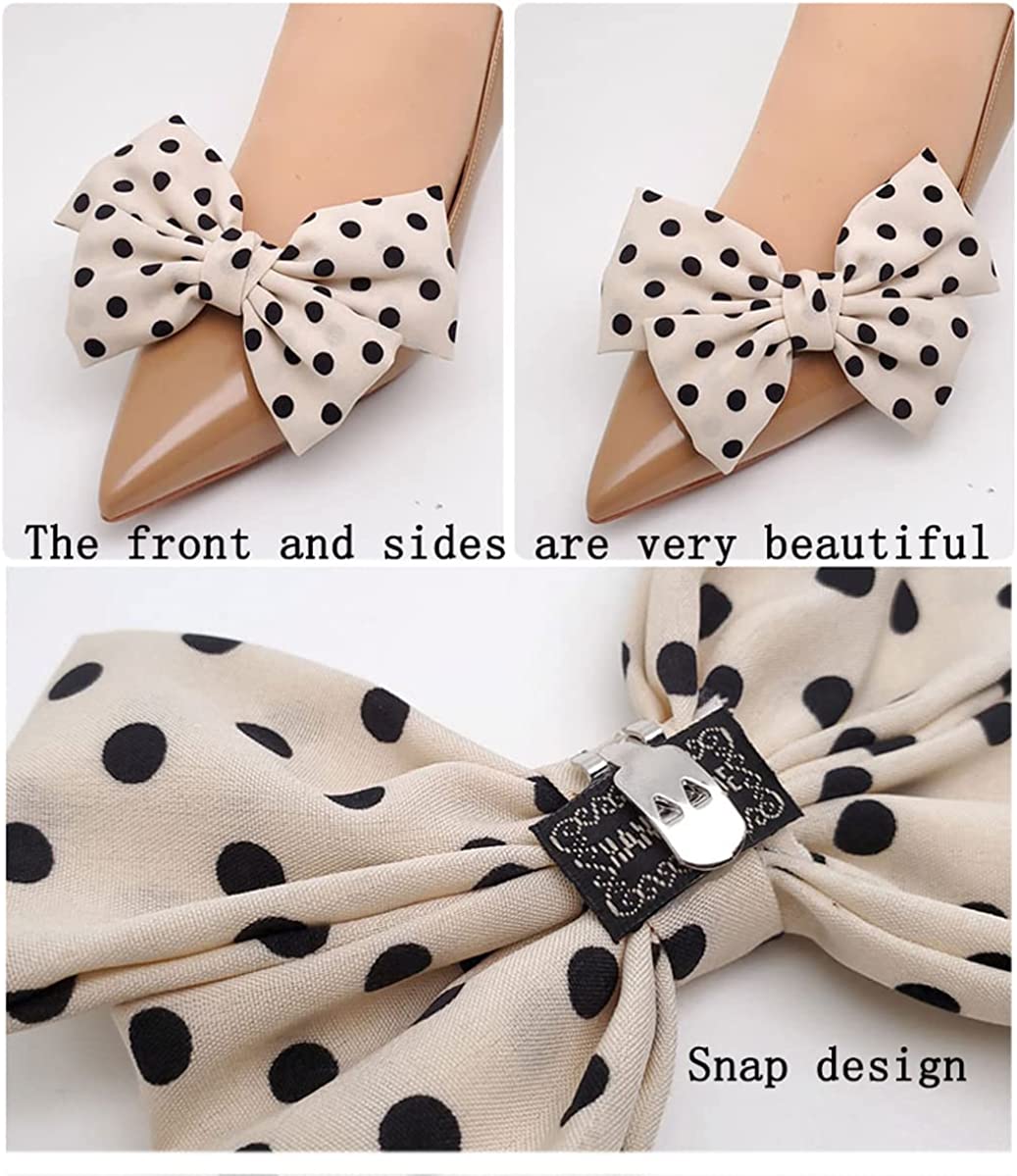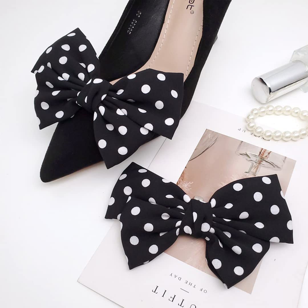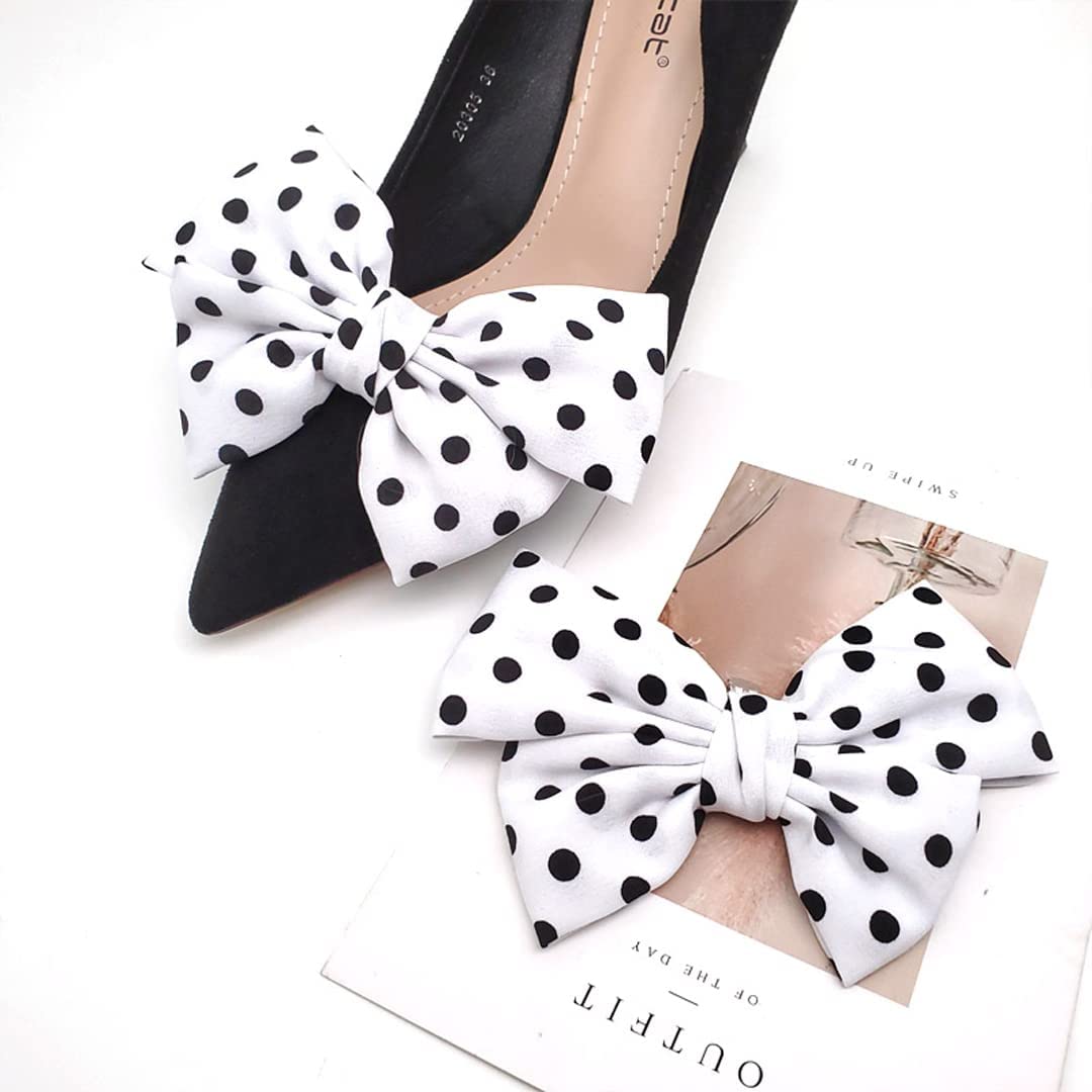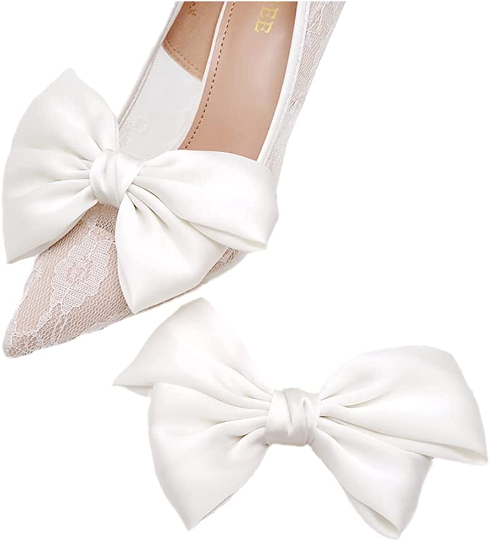 Satin Bow Shoe Clips Dots Solid Color Shoe Clips Removable Shoe Clips Elegant Wedding Party Shoe Buckle Bag Clothing Hair Accessories for Women Girls 2 Pcs