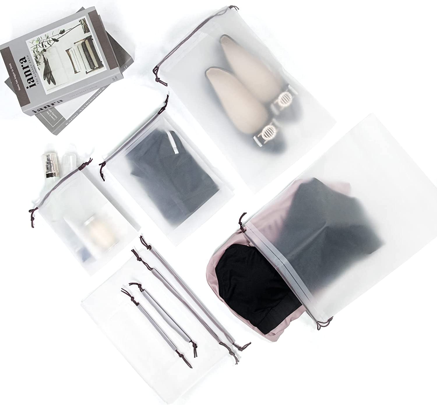 8 DRAWSTRING BAGS: Together with the bag comes 8pcs (6*8", 7*10", 10*14", 11*15", 2pcs of each size) drawstring bags, which worth 10 USD, perfect for your underwear, socks, shoes, cosmetics, etc. This can keep your changing clothes well organized during trip.