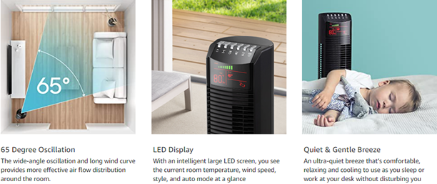 - 3 Speeds & 3 Styles: Choose between 3 speeds (Low-Medium-High), 3 modes (Normal, Natural, or Sleep), and a 65° oscillation angle to customize your breeze to stay cool on hot summer days in the bedroom, study, or office