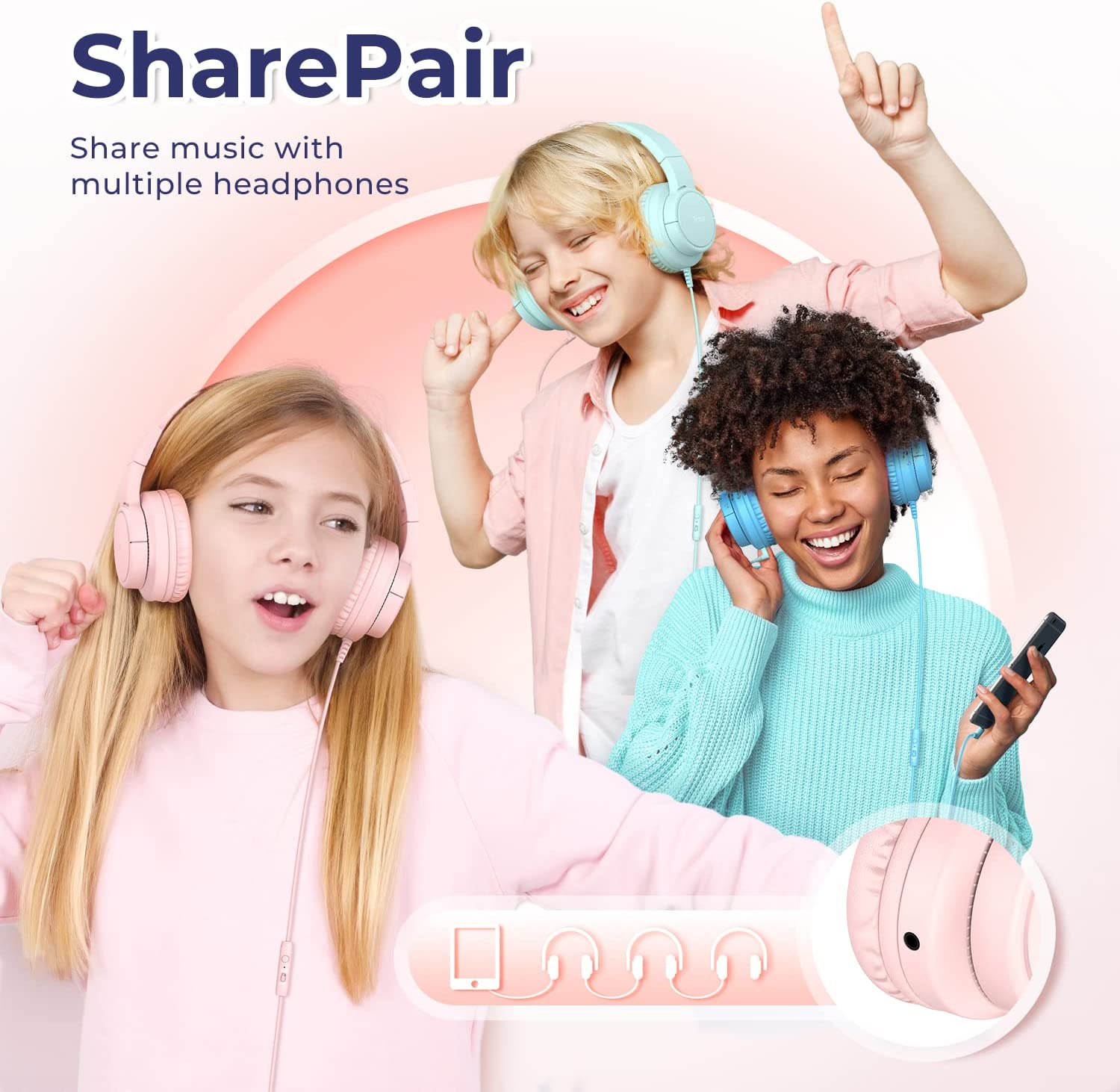 • 【Convenient SharePair & Broad Compatibility】: This Kids Wired Headphones comes with standard 3.5mm plug and fits for most devices, like Chromebook, Kindle Fire Tablet, Switch, iPad, Laptop, PC. Time to start the music! But don't forget to invite your friends to dive in the melody. Thanks to the SharePair, music sharing is made possible---available for over 3 earphones to connect at a time!
