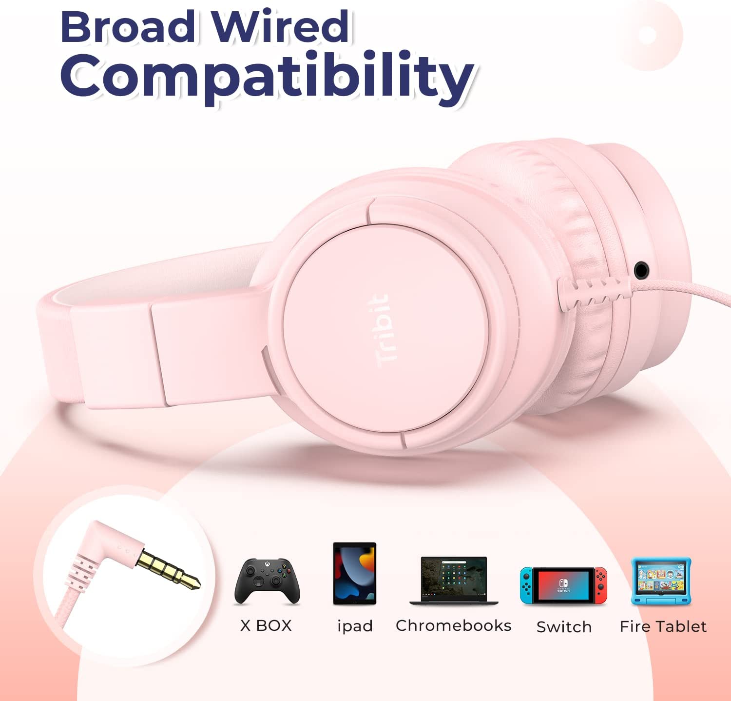 Tribit Kids Headphones Wired with Microphone, Starlet01 Safe Sound Tech 85/94dBA Volume Limited, SharePair, HiFi Stereo Foldable Over-Ear Headphones for Kids for School/Travel/iPad/Kindle/Switch