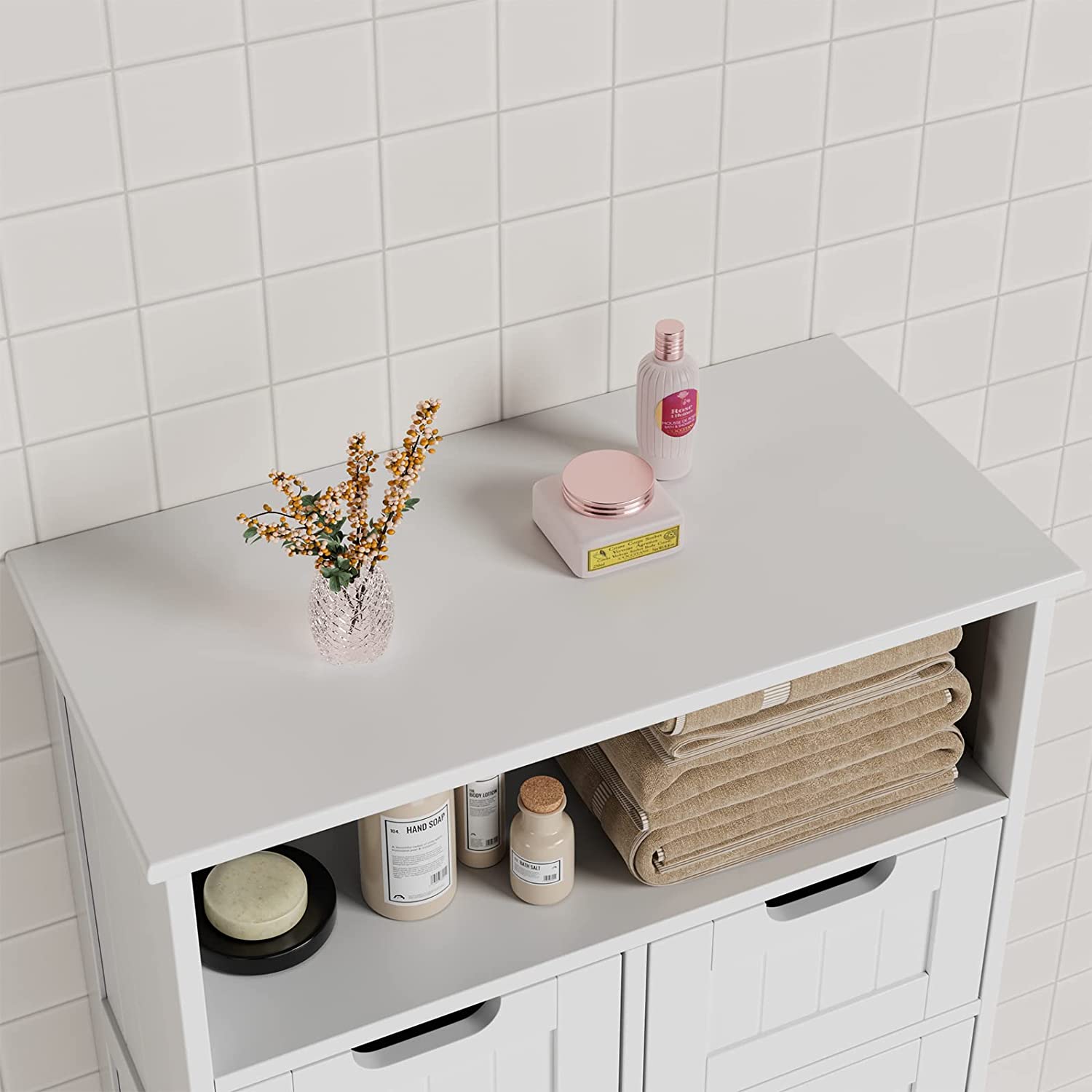 HORSTORS Bathroom Cabinet, Floor Storage Cabinet with 2 Doors and 2 Drawers, Free Standing Wooden Storage Organizer for Bathroom, Living Room, Hallway, White