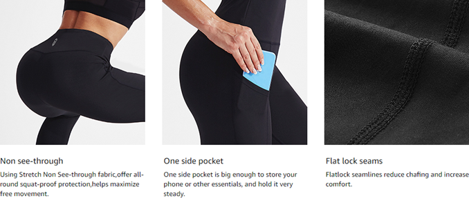 Using 4 way Stretch & Non See-through Fabric. Perfect for yoga, exercise, fitness,running, any type of workout, or everyday use