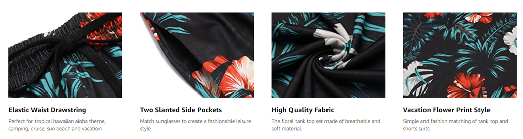 - Occasions --- The beach tank tops 2 piece sets outfits perfect for tropical hawaiian aloha theme, camping, cruise, sun beach, birthday party, vacation and casual daily wear. Match sunglasses to create a fashionable leisure style, or pair with sandals and a sun hat for beachwear.