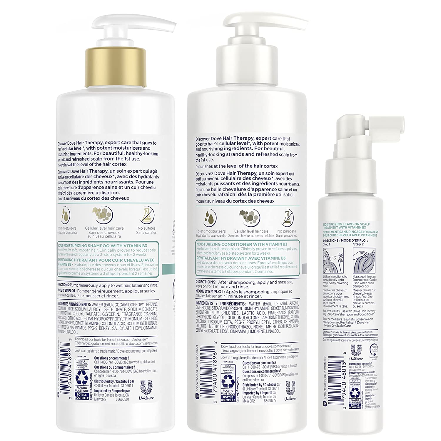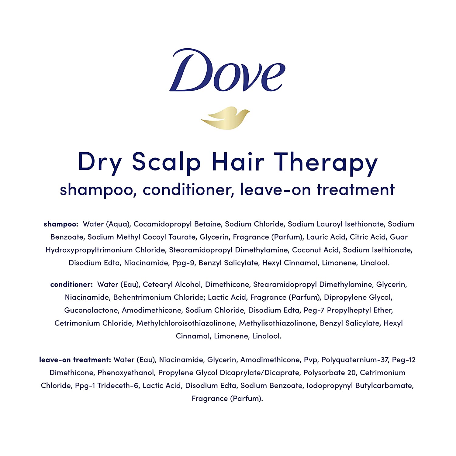 Soothe scalp dryness and treat your hair to the nourishment it deserves with our Hair Therapy Dry Scalp Care Shampoo, Conditioner and Leave In Scalp Treatment – part of our Dry Scalp Care 3-step system. Inspired by skin care, this nourishing system gives you our classic, gentle formulas and expert care – all rolled into one. Infused with vitamin B3, this 3-step system helps protect your skin’s barrier and lock in moisture. When used as a 3-step system, our regimen set is clinically proven to relieve scalp dryness. Our Dry Scalp Care system, with a blend of potent moisturizers and nourishing ingredients, targets your hair on a cellular level** – leaving you with beautiful, healthy-looking strands wash after wash. Giving you dry scalp care that goes further, you can count on this nourishing shampoo to leave your scalp feeling refreshed – and with soft hair, you’ll love running your fingers through. Perfect for: Soothing scalp dryness: If you’re looking to soothe scalp dryness, when used as part of our 3-step system - shampoo, conditioner, and leave-on treatment - this nourishing system, with vitamin B3, is clinically proven to relieve scalp dryness*. Beautifully soft hair: This system will help to make hair smooth and soft with every use. Being kinder to the planet. Globally, Dove does not test on animals. Our Hair Therapy Care range carries the PETA cruelty-free logo for added peace of mind.