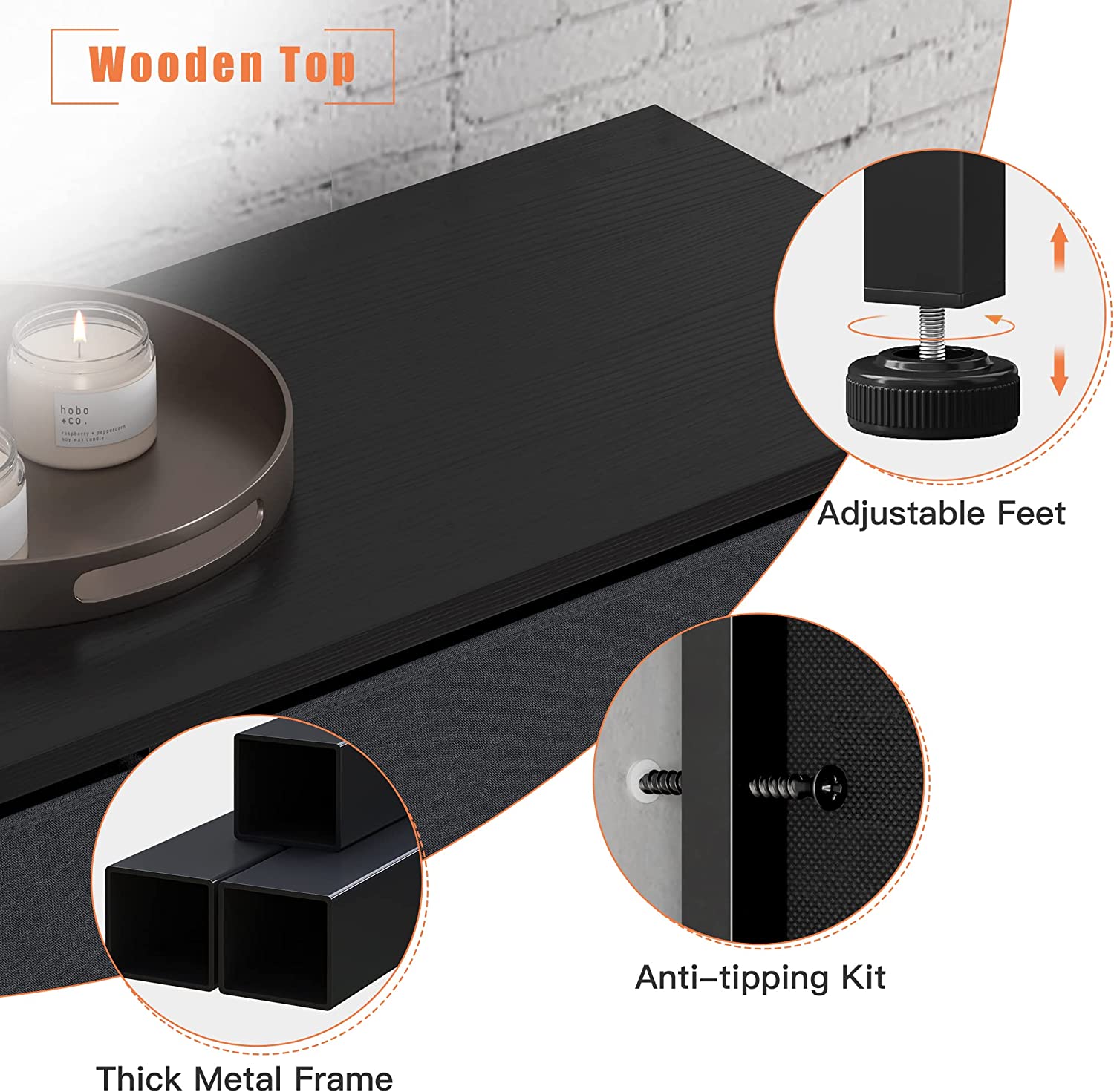 【MULTI-FUNCTIONAL DRESSER & CHEST OF DRAWERS】 Multi-functional tall black dresser can be used not only as a dresser, but also as TV stand, entryway table, bedside table. You can place in many locations such as kitchen, bedroom, living room, entrance way, closet, office, etc.; It provide more space for your storage needs.