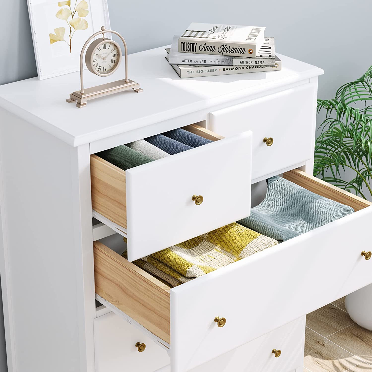 Premium Material - The dresser chest of drawers is made with reliable MDF, there is an anti toppling device in the back of the dresser to enforce stability. Smooth finish surface makes it easy to clean and dry out