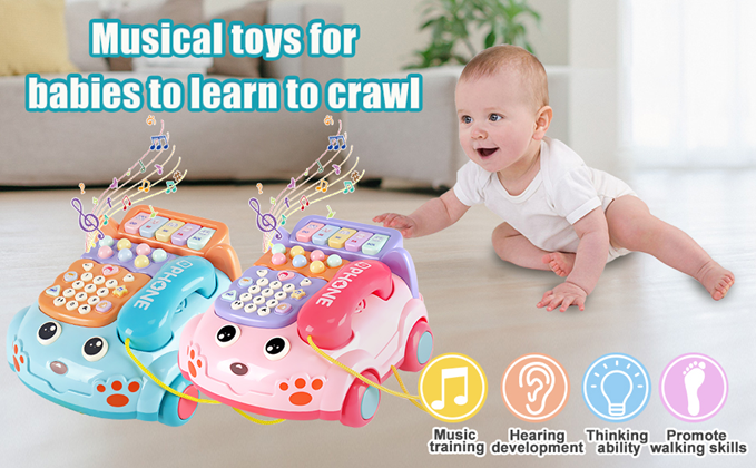 ☎【A combination of phone music toys】: kids cell phone girl analog phone toys with integrated lights and sounds. Baby phone toy has 31 buttons, including musical instruments, music, lullabies, numbers, piano, and games, which can increase children's interest in music and enhance the hand-eye coordination of young children, children can easily drag the baby toy phone cartoon machine to anywhere by dragging the tow rope.