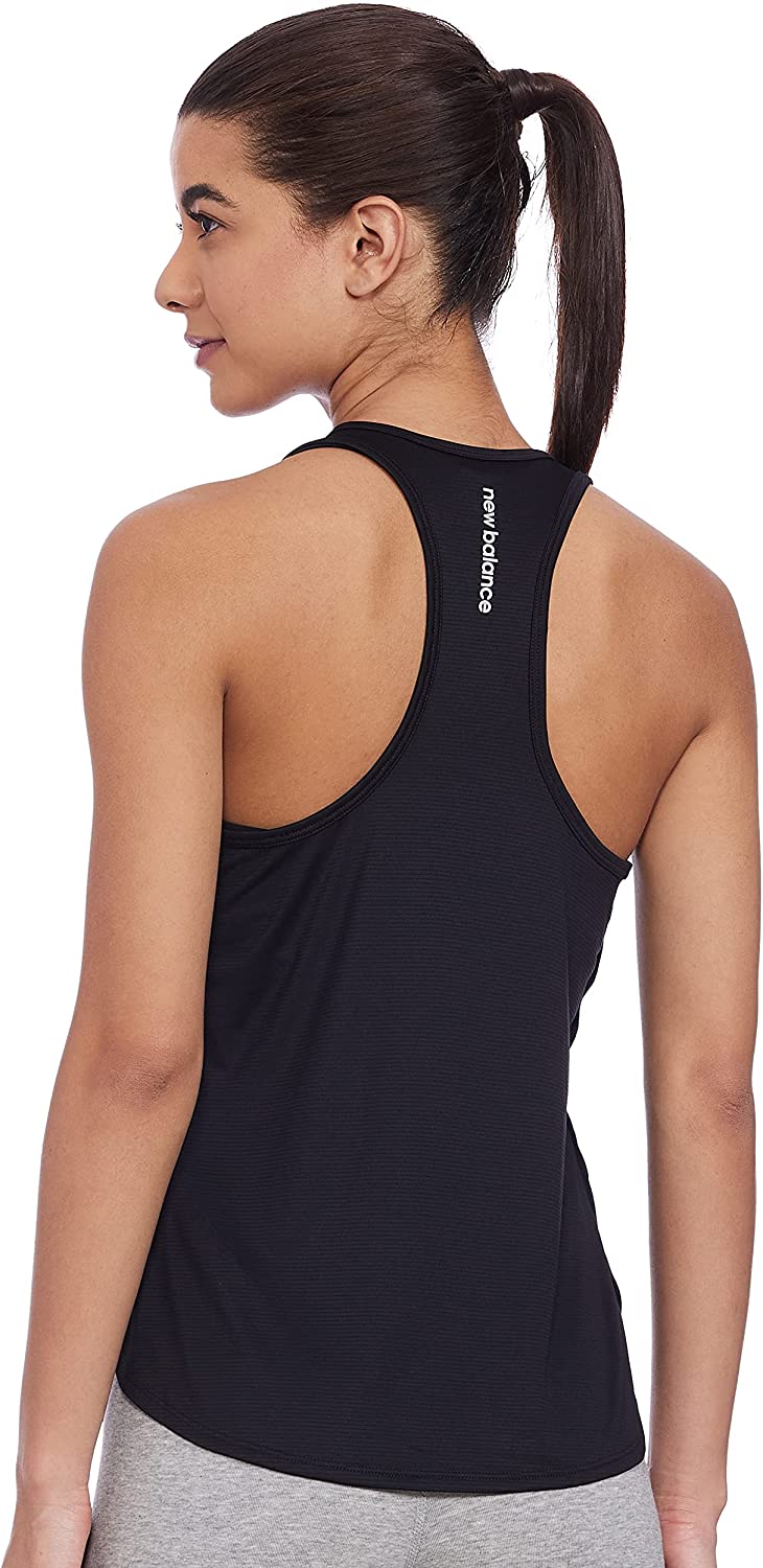 Womens New Balance Accelerate Tank :: Break a sweat in style. The tunic-length, athletic-fit Accelerate Tank features 100% poly pique plus reflective logo and tape. NB Dry moisture-wicking fabric releases moisture away from the body and is designed to help keep you dry.