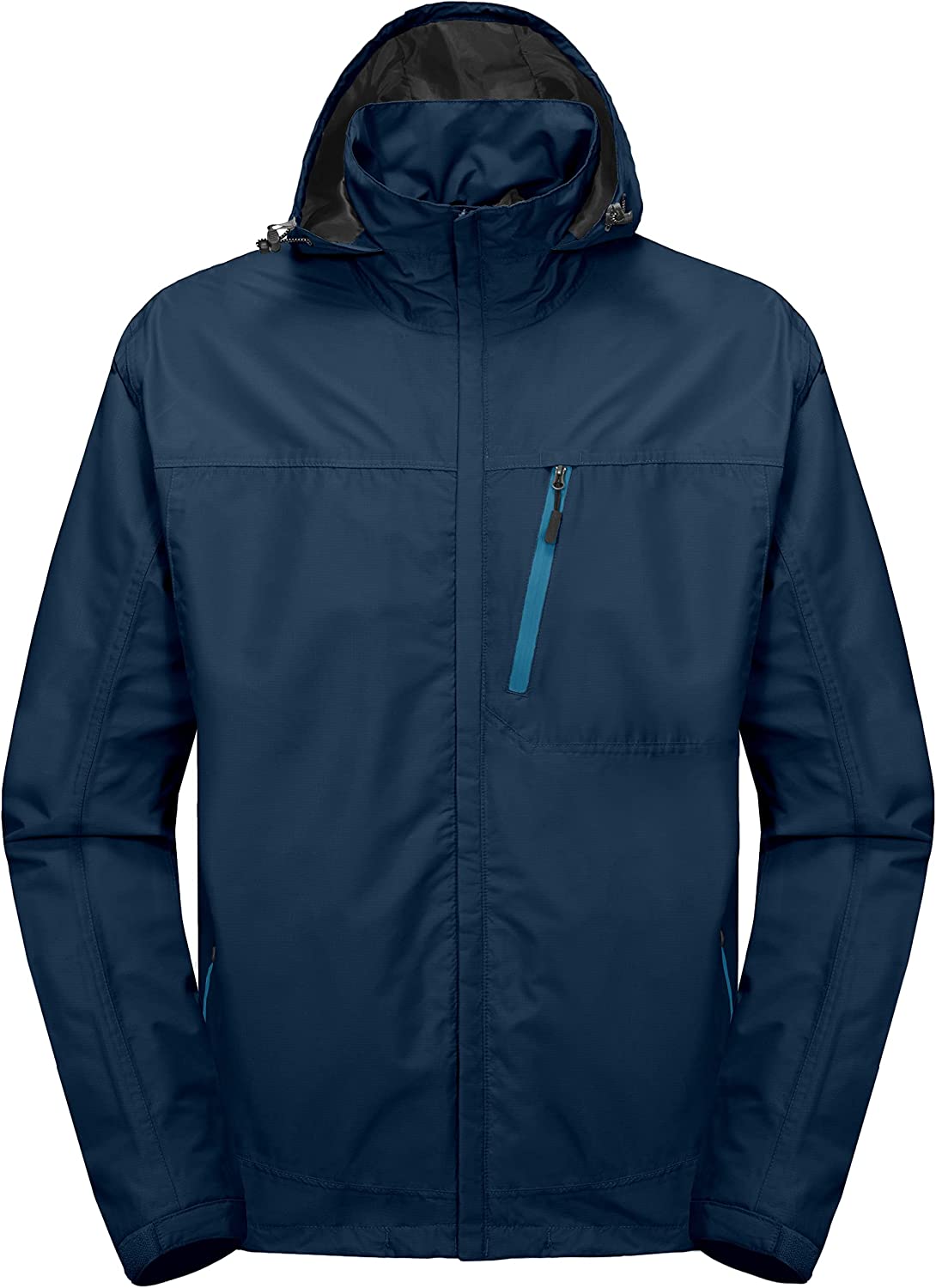 WINDPROOF WATERPROOF JACKET: This mens hooded rain jacket is made of performance windproof and waterproof material, features Waterproof/Breathable Fully Seam Sealed, performs well in windproof and waterproof, keep you dry and comfortable in light rainy day. But We Do Not Suggest to Wear It In Heavy Rain