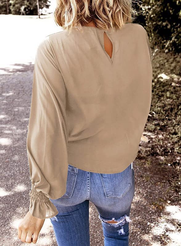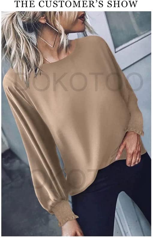 Dokotoo Womens 2023 Summer Long Sleeve Ruffle Bubble Sleeve Casual Loose Shirts Tops and Blouses