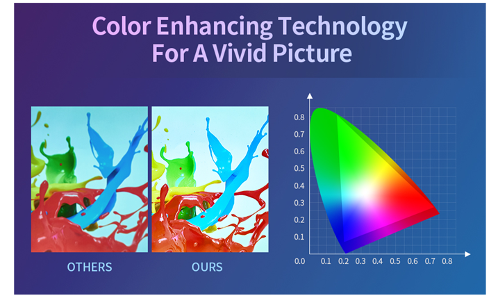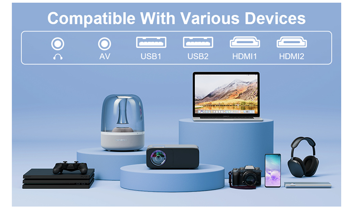 - ?【HiFi Speakers & Low-noise Radiator Fan: 】 We have built-in 10W dual stereo speakers with a HiFi system for a great auditory sense experience. Listen to what you want, not what you don’t with the projector’s optimized low-noise radiator fan, it has a 20% reduction in noise compared to competitors. And because of this improved fan it also helps to extend the life of the projector to 50,000 working hours.