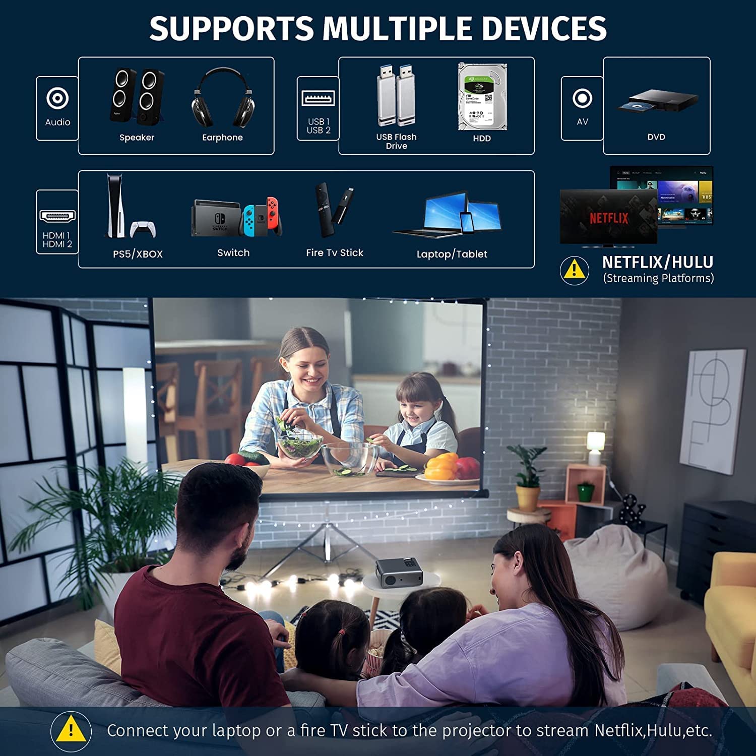 - ?【Native 1080P, 15000L & 550 ANSI Lumens, 4K supported】 2023 upgraded WiFi projector, using the original physical resolution of 1920x1080, has 3 layers of refractive glass lenses. Compared to our competitors who use single layer lenses, we use multi-layer refractive glass lense technology to reduce projecting blurry edges on screen. Its display is calculated to render sharper resolution to the full screen. It has 550 ANSI lumens, much brighter and more colorful than other 1080p projectors.