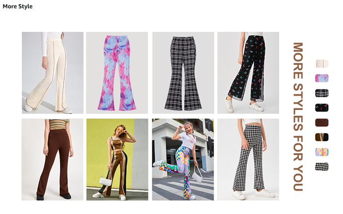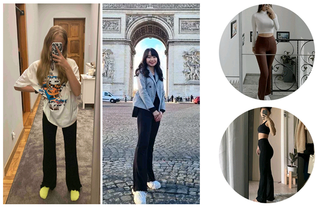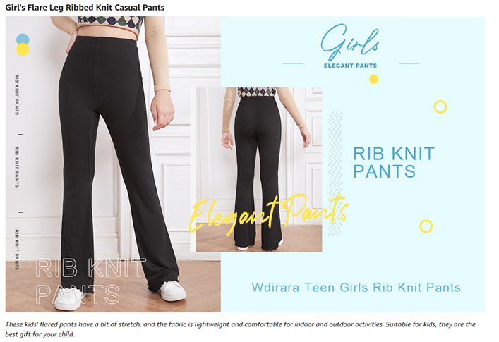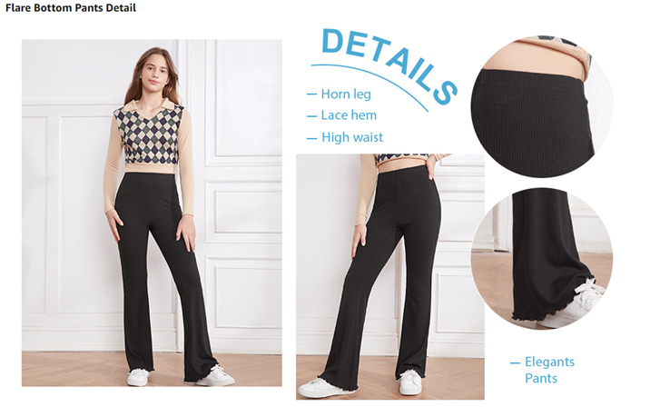 Features: elastic high waist, ribbed, long pants, flare, horn leg, lace hem.