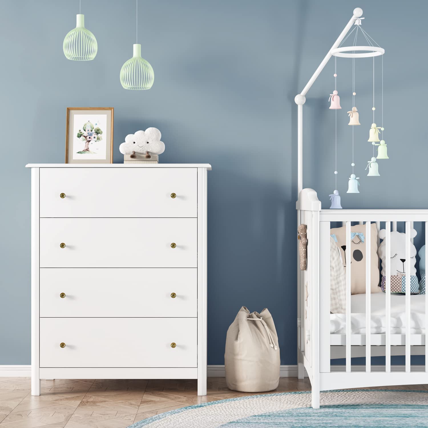 HOUSUIT Drawer Chest, 4 Dresser Chest of Drawers, Clothes Storage Cabinet with Drawers, Modern Dresser for Bedroom, Hallway, Living Room, Nursery, White