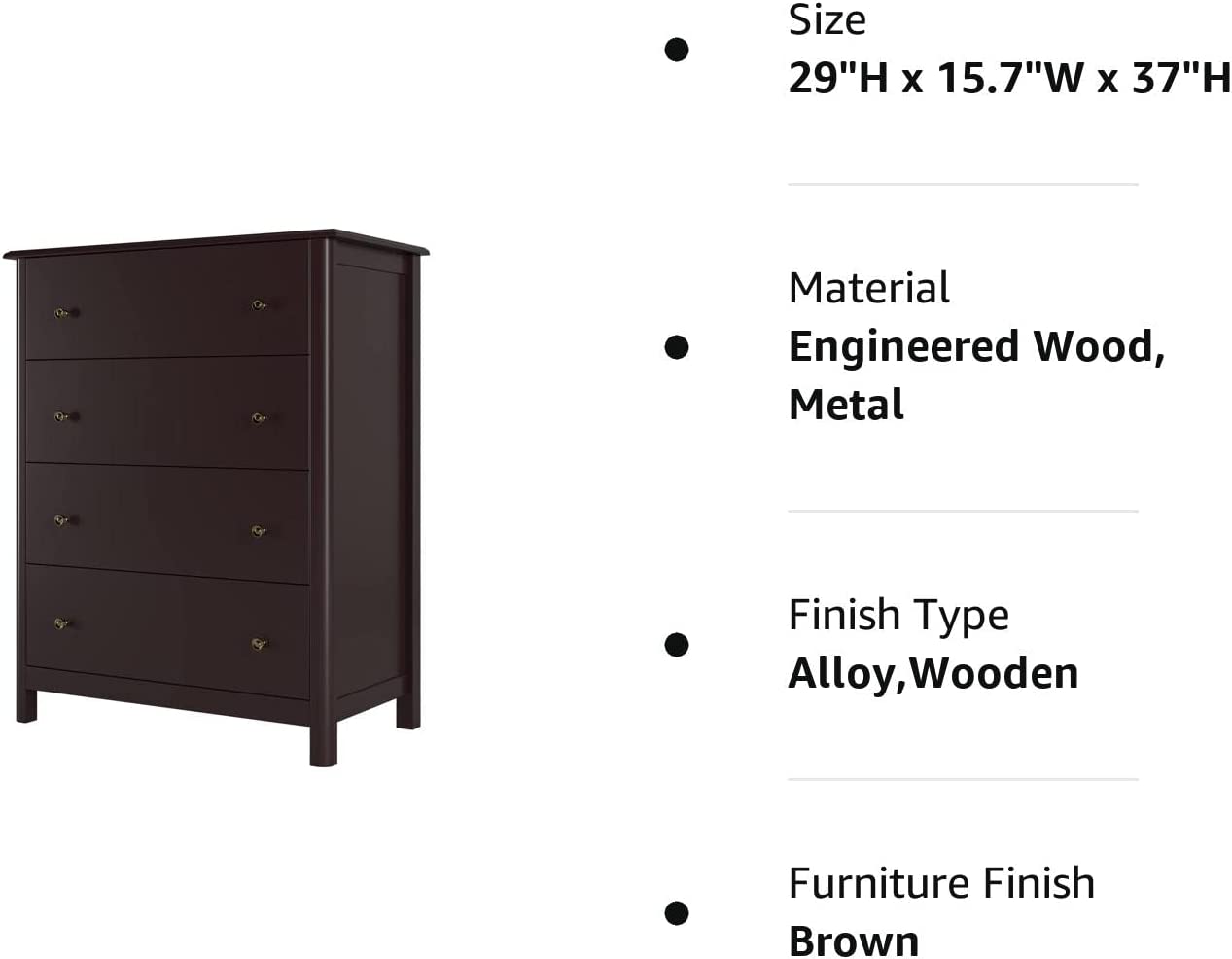 Premium Material: Crafted from high quality MDF, this chest of 4 drawers is sturdy enough to withstand daily use for many years. Alloy handle and metal slides on each layer help drawers run smoothly