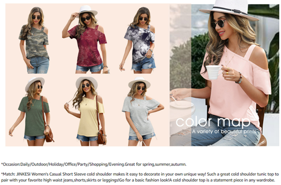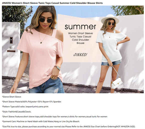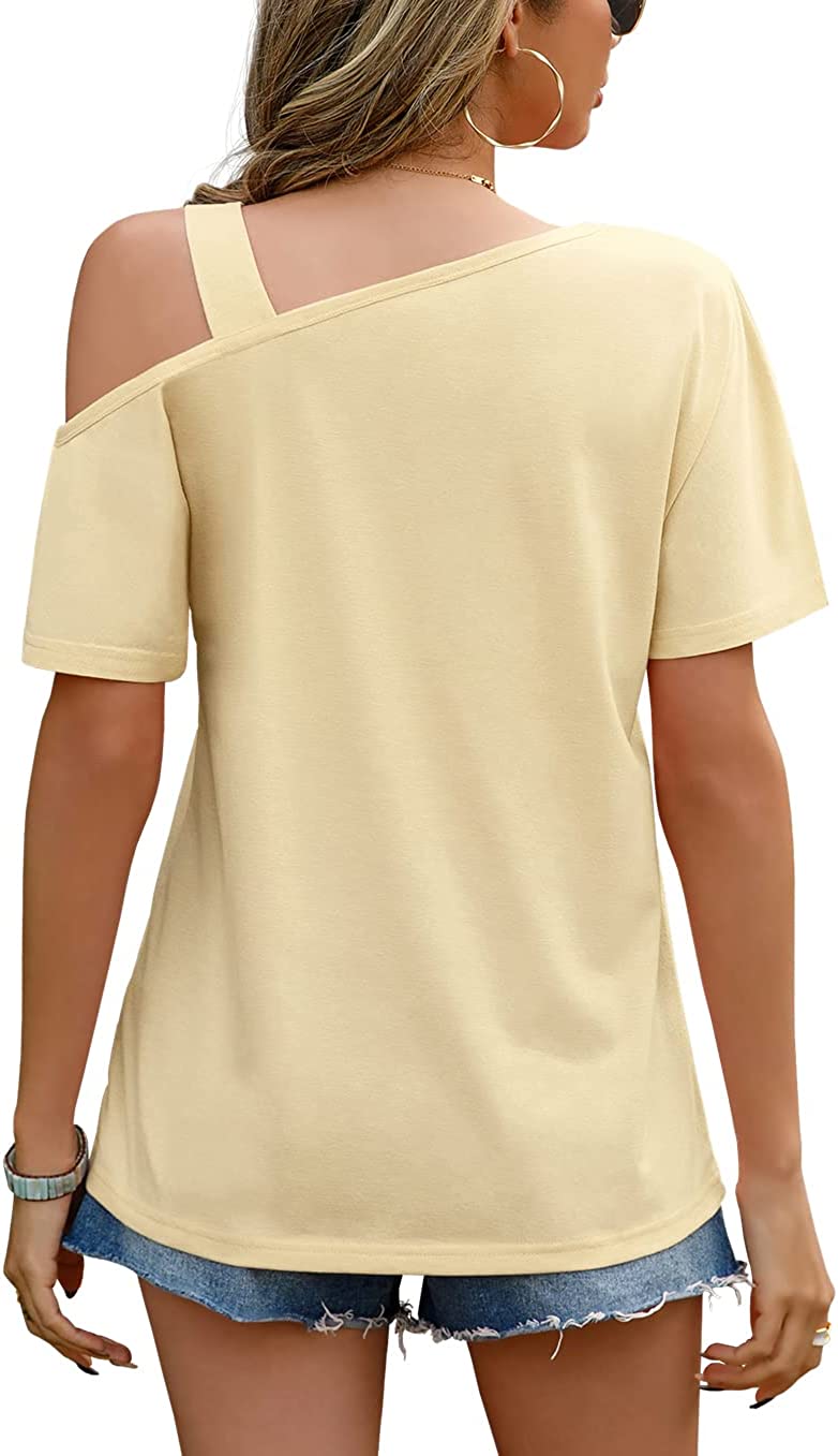 JINKESI Women's Short Sleeve Tunic Tops Casual Summer Cold Shoulder Blouse Shirts