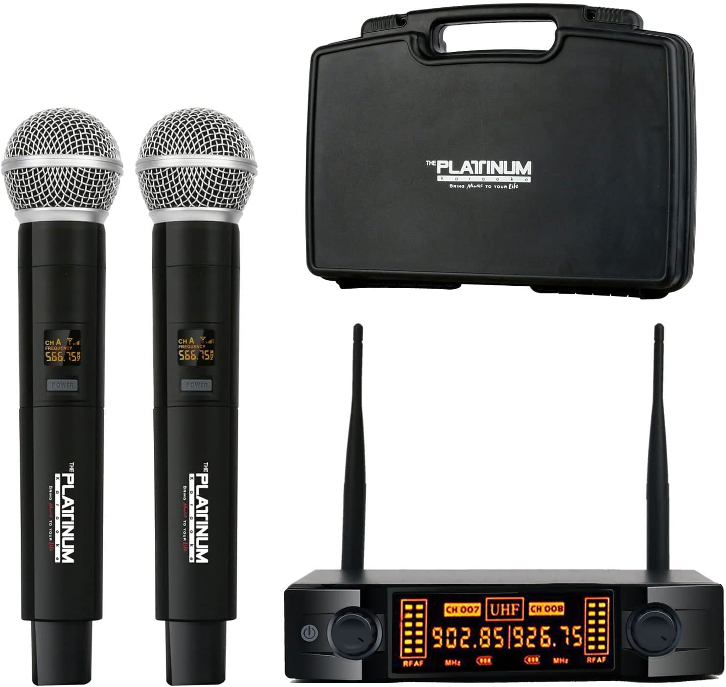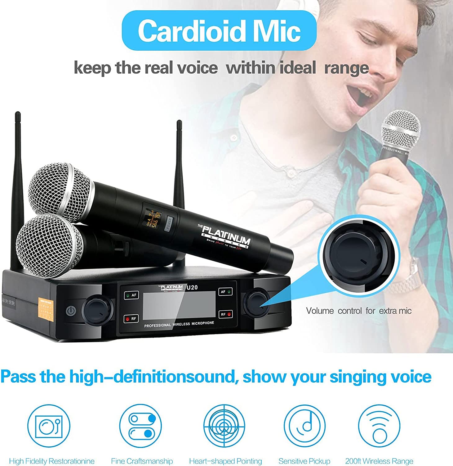 The Platinum Wireless Microphone System, Metal Professional Dual Channel Handheld Dynamic Mic System with Professional Karaoke Receiver, for Party, KTV, Meeting, Wedding, DJ, Church,200ft