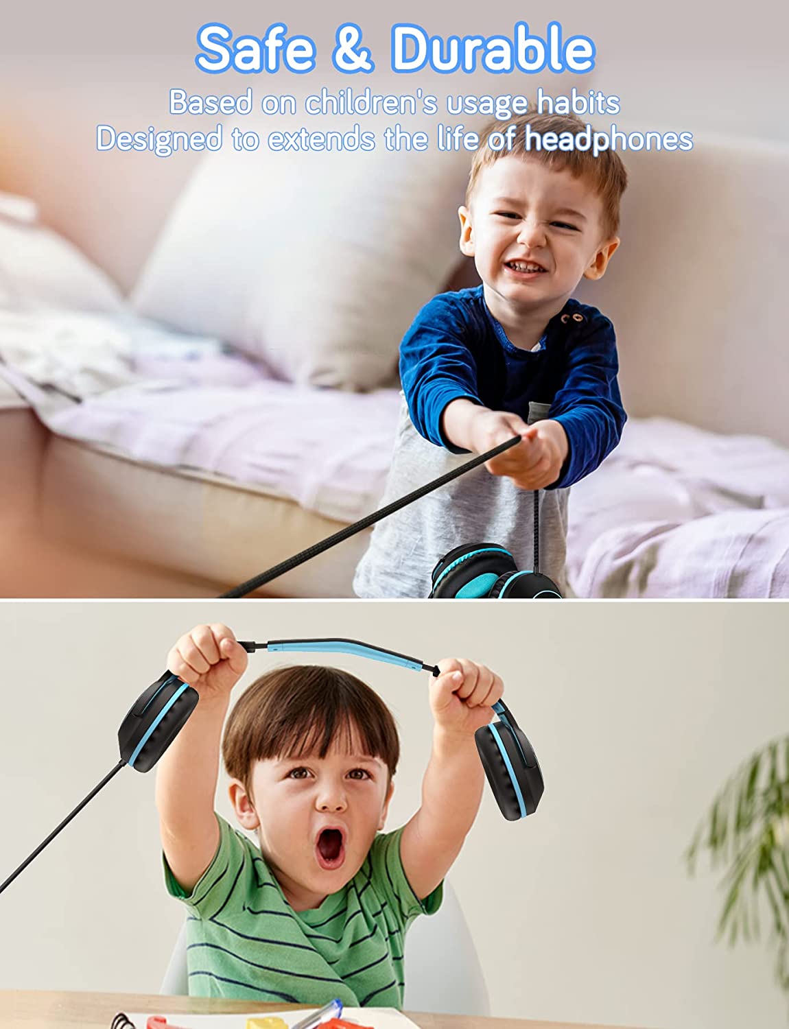 To Protect Kids' Hearing - This kids headphones provides 2-level volume limiter, which protects children's hearing from the harm caused by turning the volume up without any limit. Hence choose the 85dB volume limiter for daily use. If the child is in a noisy environment like car or airplane, please adjust the limiter to 94dB for crystal clear sound.
