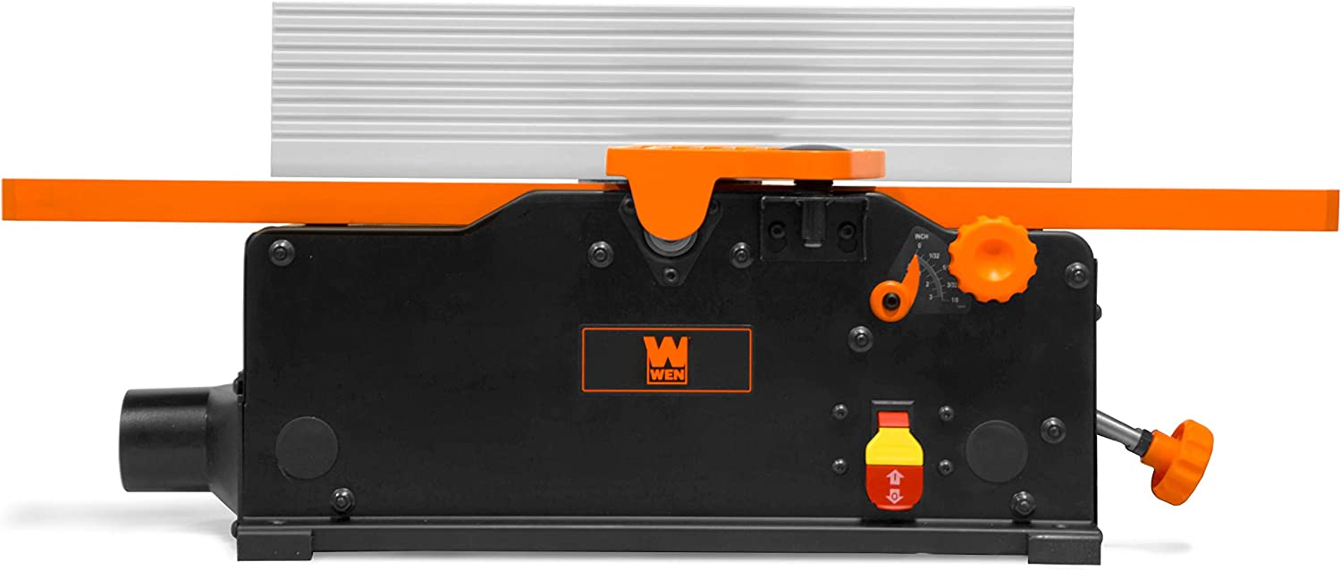 Remember when you had a perfectly square jointer to flatten out your boards and workpieces? Maximize precision with the WEN 6-Inch Benchtop Jointer. Our spiral cutterhead utilizes 12 staggered HSS blades to provide a perfect finish to hard and soft woods alike, while the powerful 10-amp motor rotates the cutterhead up to 12,000 times per minute. Adjust the infeed table to remove 0 to 1/8-inch of material with each pass, with a reliable depth-of-cut scale for maximum accuracy. The spacious table measures in at 30 by 6 inches. Bevel the fence up to 45 degrees to create angled cuts along the faces of your boards. The spring-loaded blade guard helps protect against accidental injury, only exposing a limited section of the cutterhead during jointing operation. This package also includes two push blocks for safer jointing and an onboard dust port for minimal cleanup. Compatible with the WEN BP510H Replacement Spiral Blades. And, because it's a WEN product. a stocked inventory of replacement parts, and a friendly customer help line, all to make sure you remember WEN.