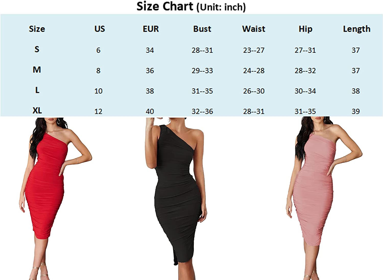 ღThe tight dress for women features with one shoulder, sleeveless, ruched, solid color, midi-length, slim fit like gloves. With sexy off one shoulder design and special lines on the back, the bodycon midi dress shows your beautiful curves and gorgeous fashion style