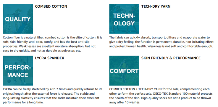 About Moisture-Wicking: There is a limit to the moisture wicking ability of socks, and if this limit is reached, drying is required to restore performance. Please feel free to explore and we look forward to hearing from you.
