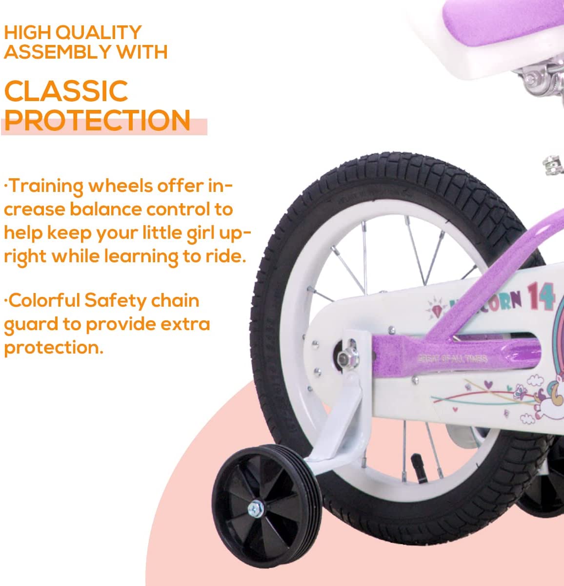 - Easy to Assemble - The JOYSTAR Fairy 12 inch toddler girl bike comes ready to be assembled and includes the following: training wheels, saddle handle, chainguard, basket and bike bell. If you have problem about assembly or the bike, please contact us.