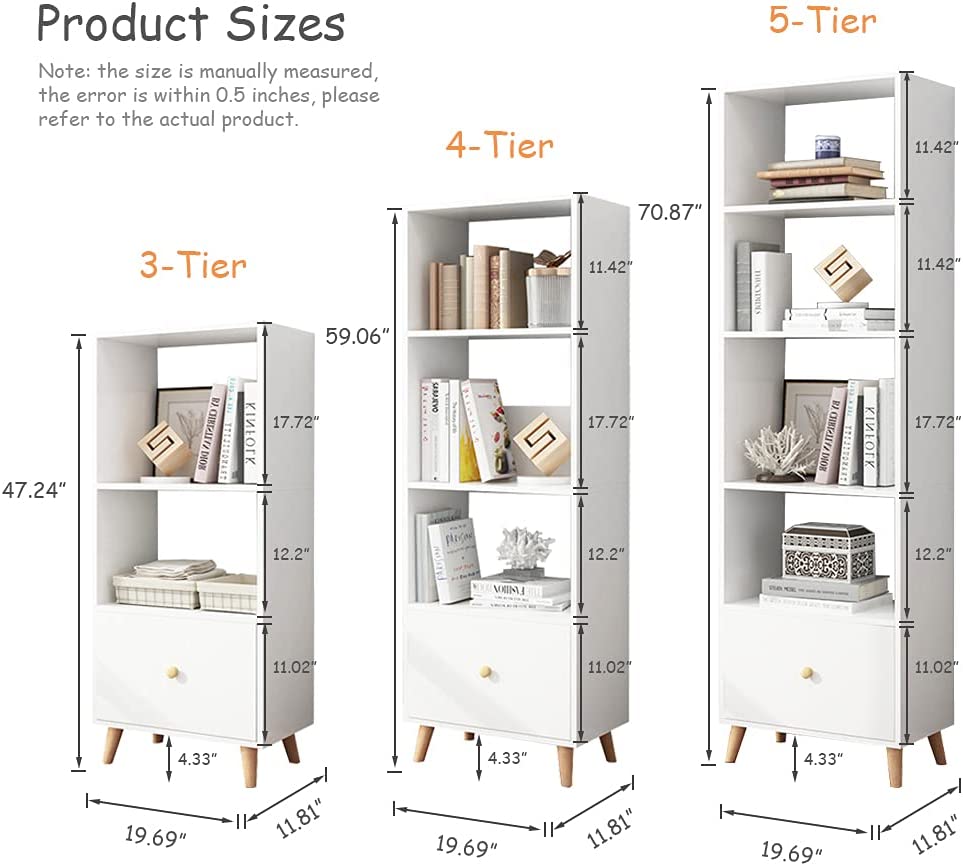 REASONABLE & PRACTICAL LAYOUT - A wide top, two deep cubes, and one private drawer allows you to maximize usage of the bookshelf's storage and display functions;