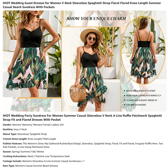 FEATURES: Summer Dress/Floral Print Dress/Patchwork Dress/Spaghetti Strap Dress/Gather Bust/Irregular Ruffles Hem/Side Pockets/V Neck Dress/Ruched Dress/Sleeveless Dress/Elastic Waist/Knee Length Dress/A Line Swing Dress/Fit And Flared Dress/Backless Dresses/Casual Sundress.Floral print and patchwork design makes you look more cute but fashion.Whether you go out or go to a beach vacation,it will be a good choose for summer!