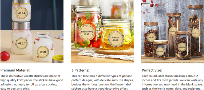- Versatile: Widely used for jams, sealed envelopes, gift sticker labels, can labels, spice labels, bottle labels and any smooth surface. Make sure the surface is clean and dry before applying the label.