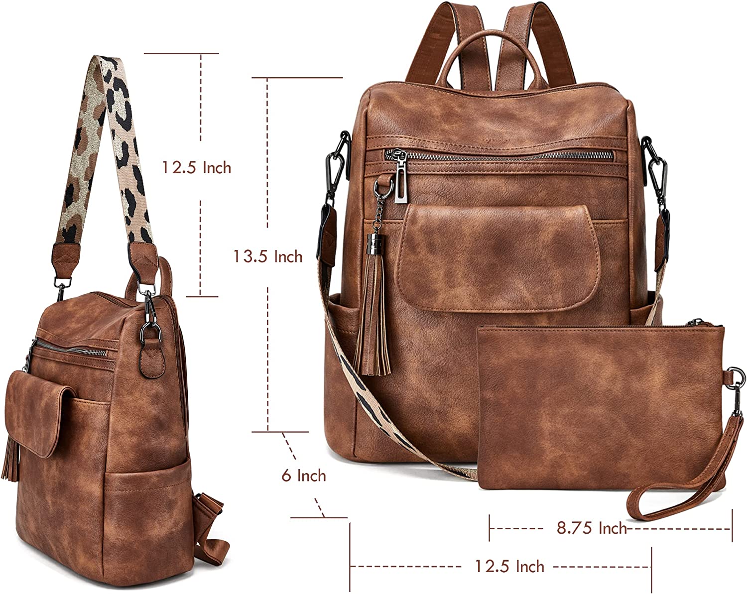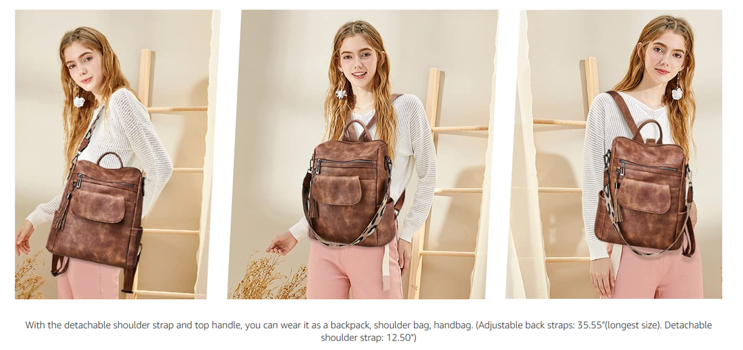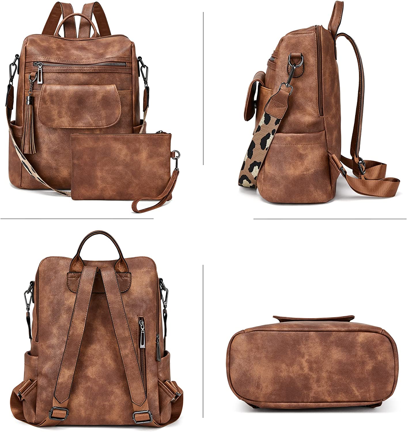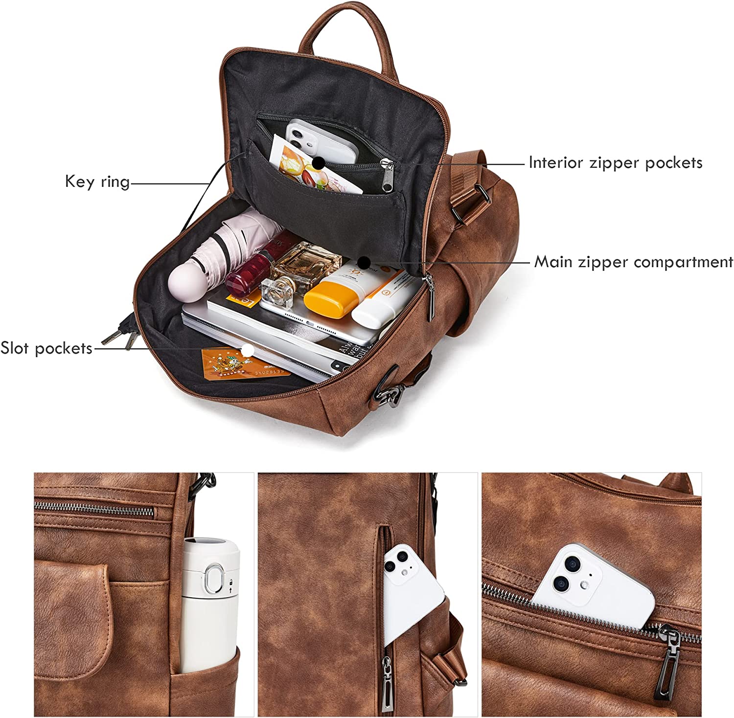 【LARGE CAPACITY】This leather backpack purse for women adopts a large vertical opening at the top, which is very convenient for loading items. 1 inner zipper pockets, 2 inner slot pockets, 2 front pockets, 2 side pockets, and 1 back zipper pocket. The extra wristlet provides more compartments. Multiple pockets can keep your things well organized.