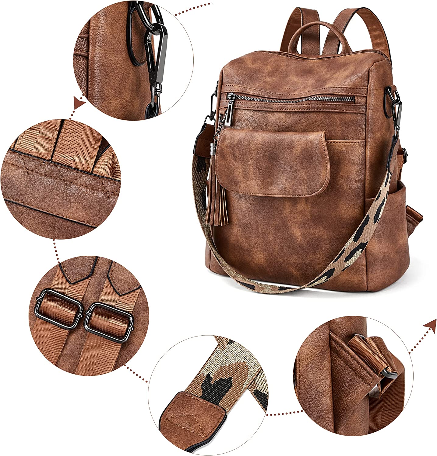 【HIGH-QUALITY MATERIAL】This backpack purse for women is made of high-quality water-resistant, anti-scratch and tear-resistant soft leather, metal accessories, canvas shoulder strap and fabric lining, all these details are fashionable and durable. and there is a cute tassel next to the front pocket.