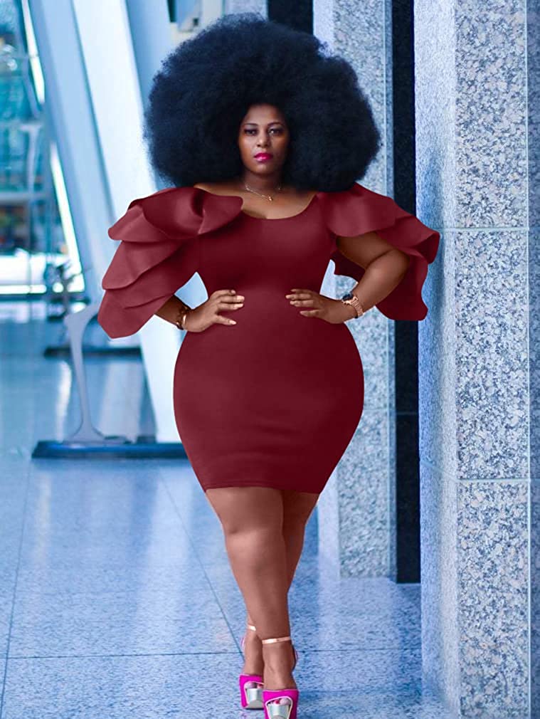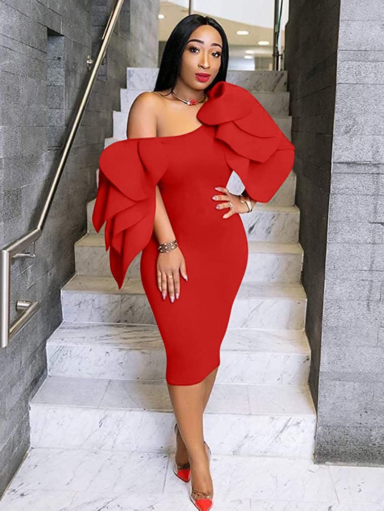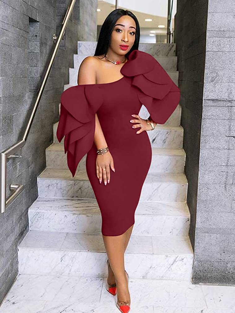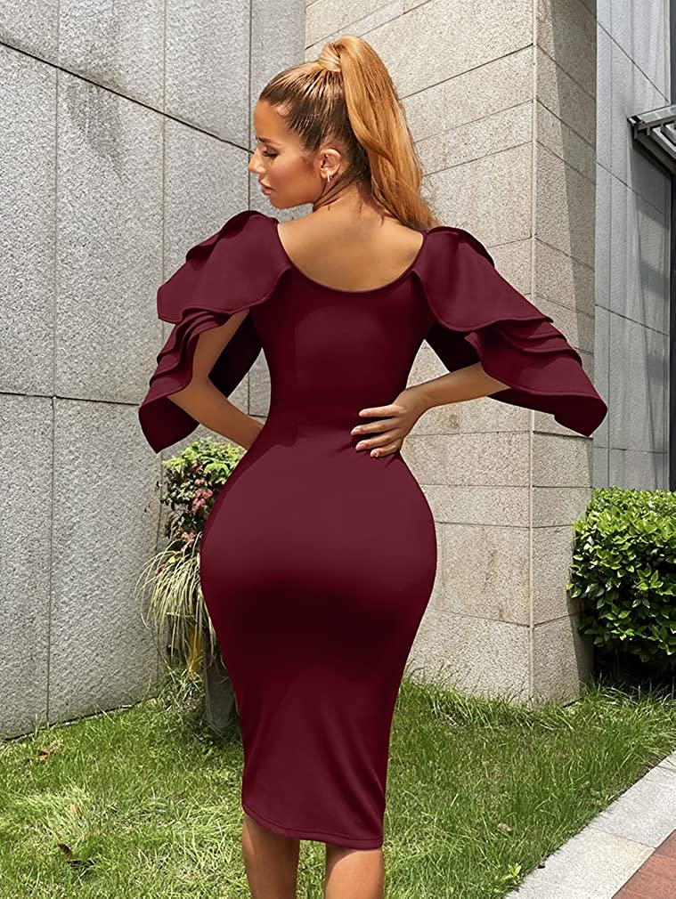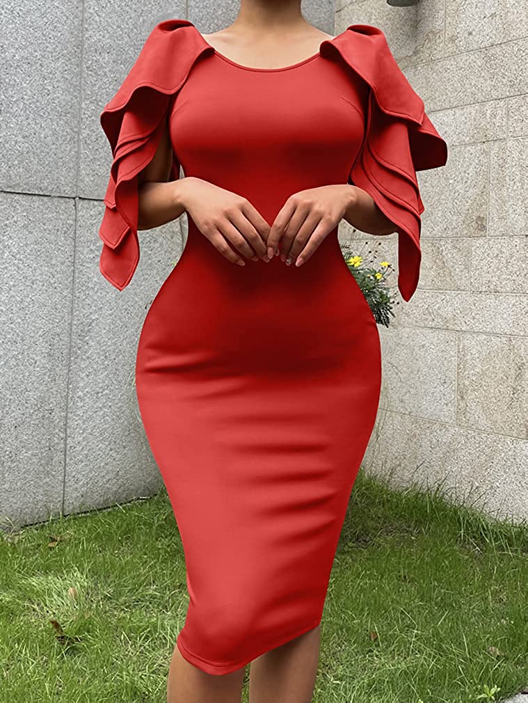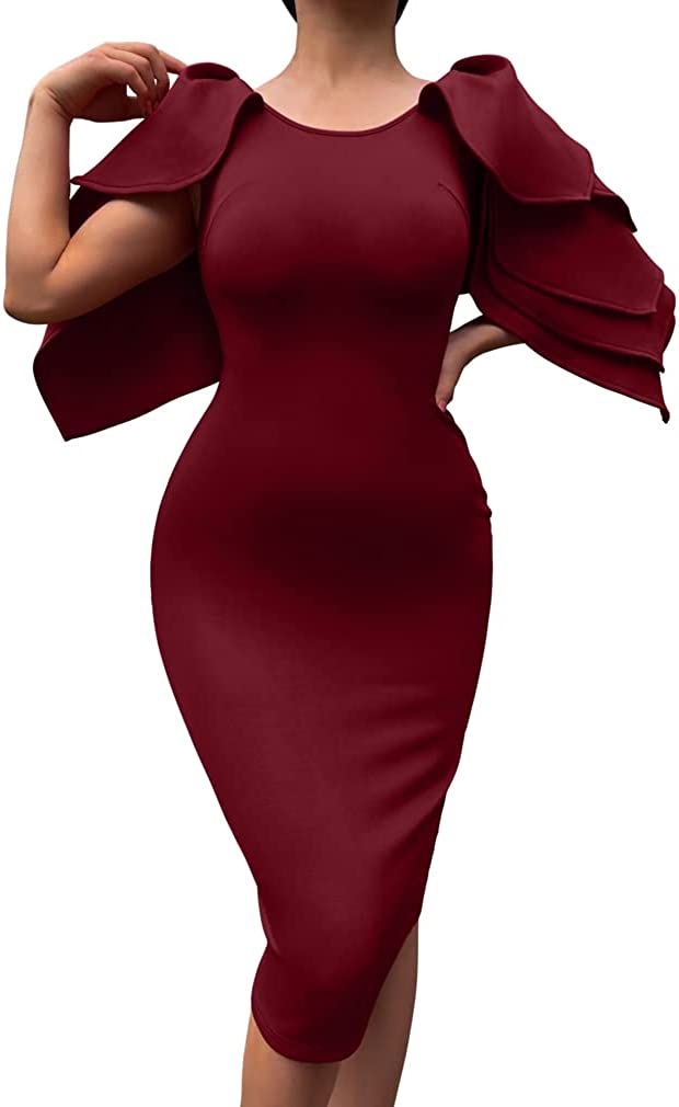 • Concealed zipper at side,so it is easy to put on and off .the ruffle sleeves very elegant,and knee-lengh pencil dress as glove wrap you,it is so sexy.