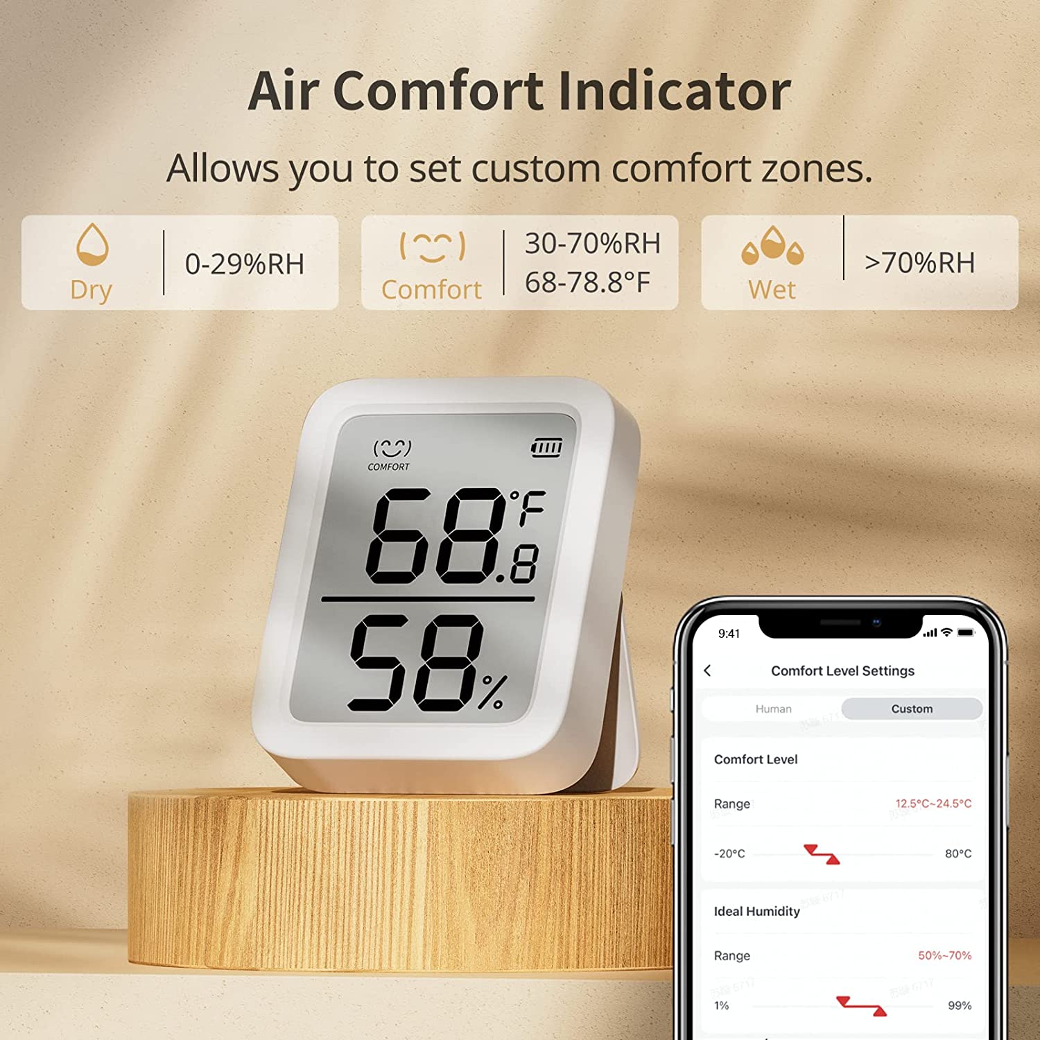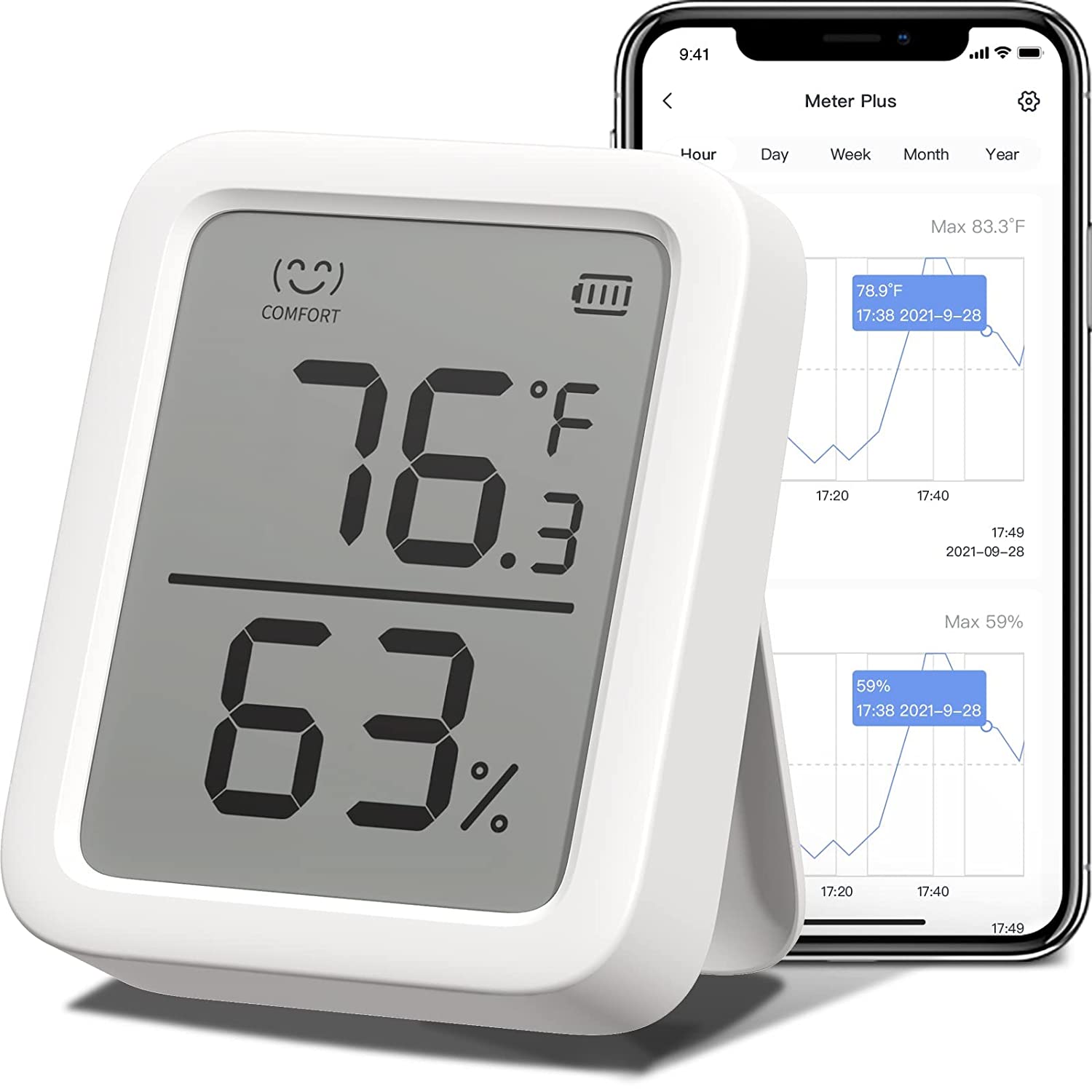 SwitchBot Thermometer Hygrometer, Bluetooth Indoor Humidity Meter for Home, Temperature Sensor with App Control, Large LCD Display, Notification Alerts, 2-Year Data Storage Export