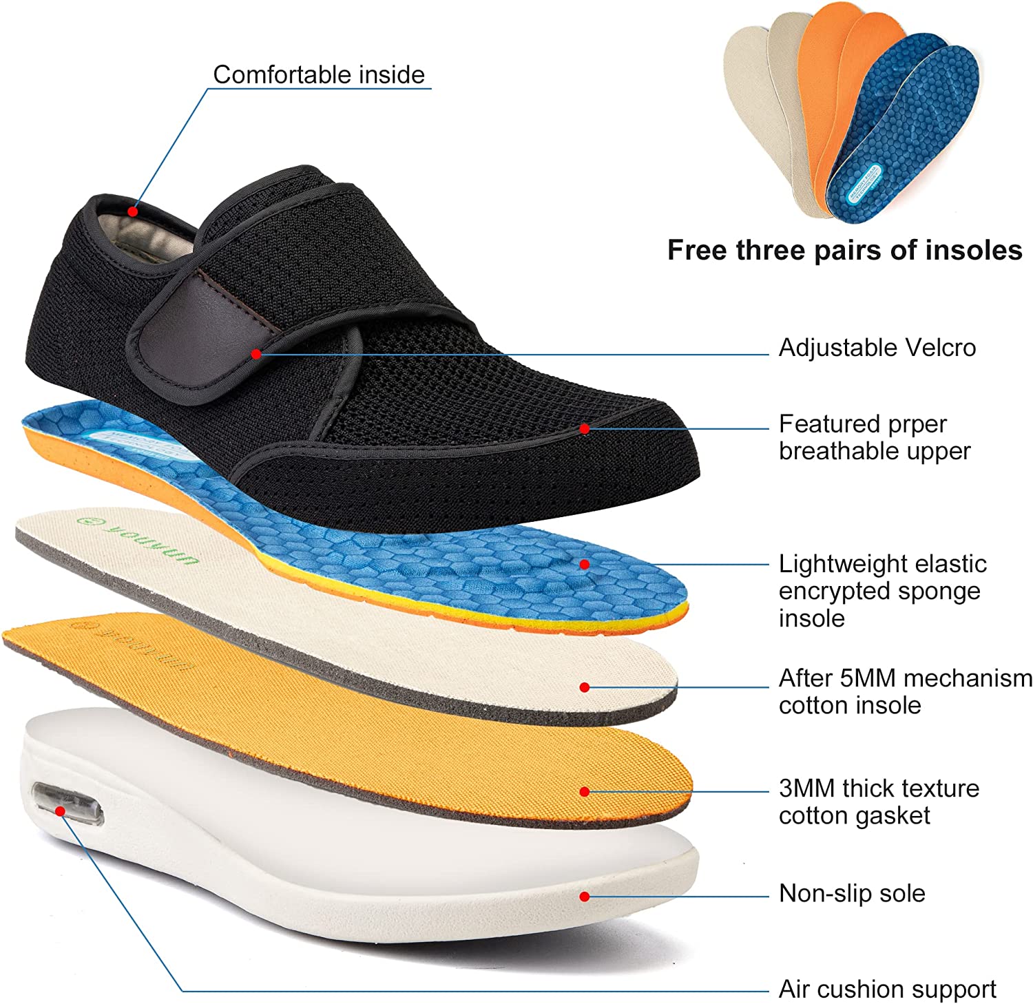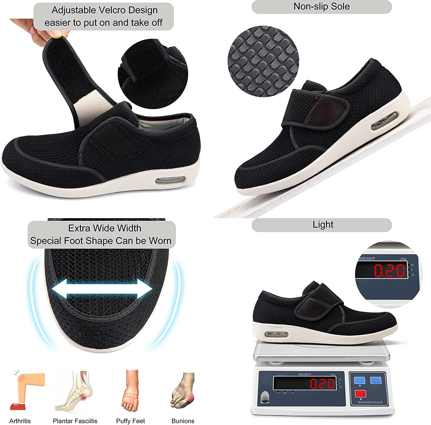 【Comfortable Swollen Feet Shoes】 : The diabetic shoes for men have a unique velcro design, free adjustment for different instep height. The lining can be pulled to the toes, so that your swollen feet can easily wear into the shoes, perfect fit for edema and swollen feet.