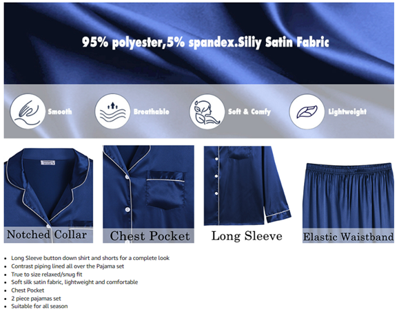 • ❤【New Style Shorts Set for Women】Premium quality silk satin fabric - 95% Polyester & 5% Spandex. Ultra soft and breathable.Long sleeves can keep you warm in the air conditioning room, elastic waist allows you easily to pull on or take off. It's silky feel on skin, have a premium touch.
