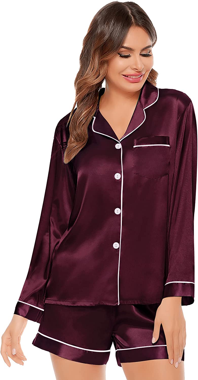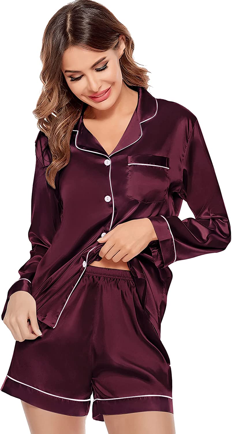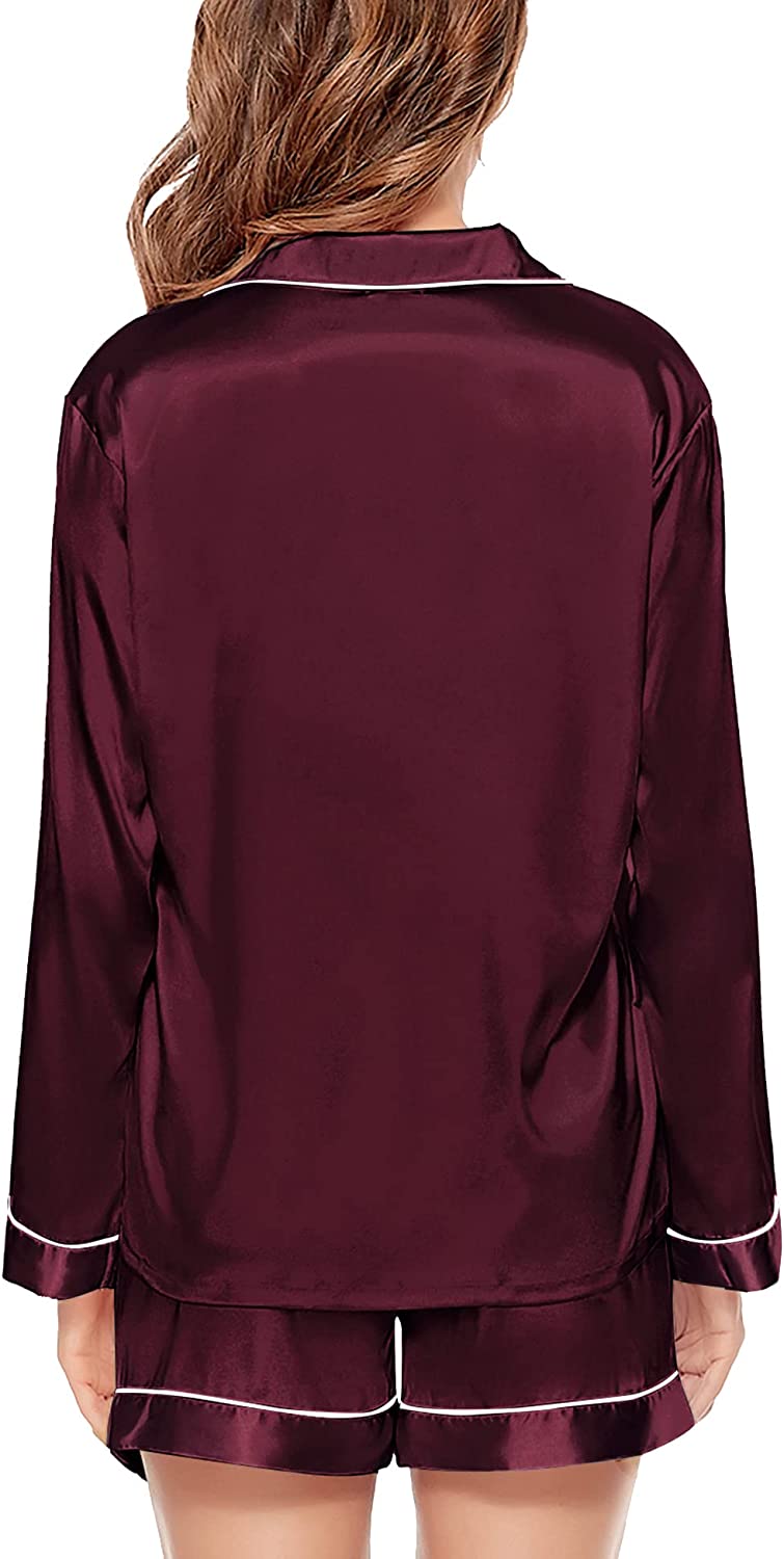 • ❤【Occasions】The long sleeve silk pajamas is casual style, great for sleepwear, nightwear, boudoir, holiday and loungewear.Long Sleeve Shorts Satin Pajamas Set, which is lightweight and easy to carry. Suitable for vacations, spas, tours, hotels, and more. It’s also the perfect throw on lounge outfit, or better yet get out of the house outfit.