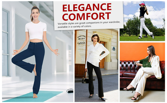 SLIGHT FLARE & ZIPPER-FLY STYLE: Featuring bootcut leg to conform to your body. High elastic waist, classic zipper fly and button closure. These relaxed fit pants are suitable for work or casual.