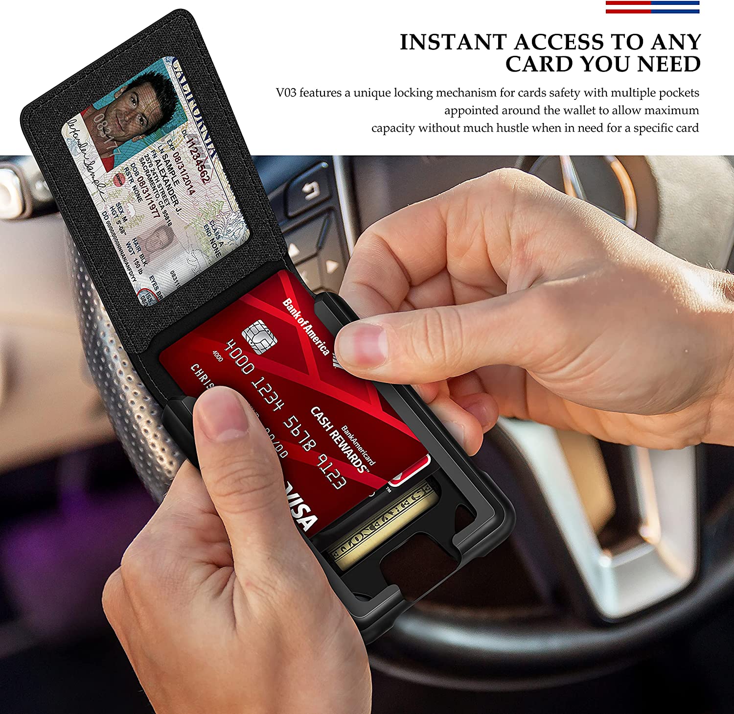 SPRING LOCK DESIGN: This is only one MURADIN slim wallet of spring lock design now, pushing cards design make you take credit cards easily. Only 4.2*3*0.7 inches mens wallet offer space that holds most 12 cards and 1 to 5 cash.