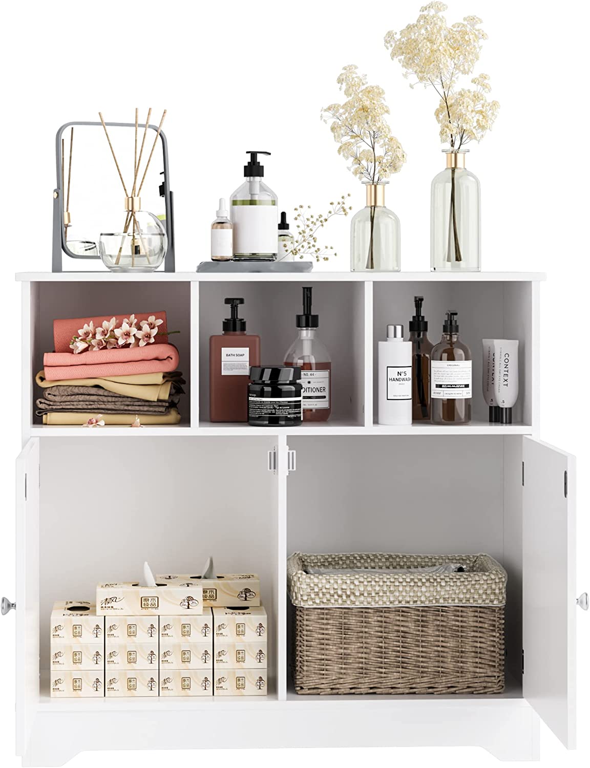 Sturdy & Reliable Structure: The bathroom storage cabinet is made of durable MDF for long-term use, the eco-friendly finish is water-resistant and scratch-resistant. Overall load capacity: 180 LB. With anti-toppling device provided for double security, it is definitely a piece of ideal home furniture! (Include Hole Sticker)