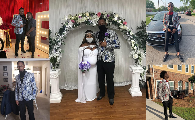 Feature:Single-breasted Suit Jacket Two Buttons Closure Notched Lapel Back Center Vent Blazer with Hot Stamping Printing Technology