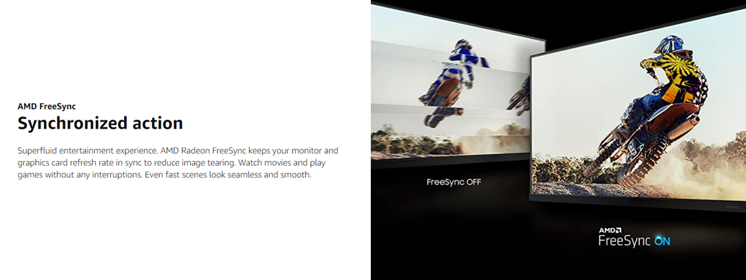 - SYNCHRONIZED ACTION: Superfluid entertainment experience. AMD Radeon FreeSync keeps your monitor and graphics card refresh rate in sync to reduce image tearing. Watch movies and play games without any interruptions. Even fast scenes look seamless and smooth