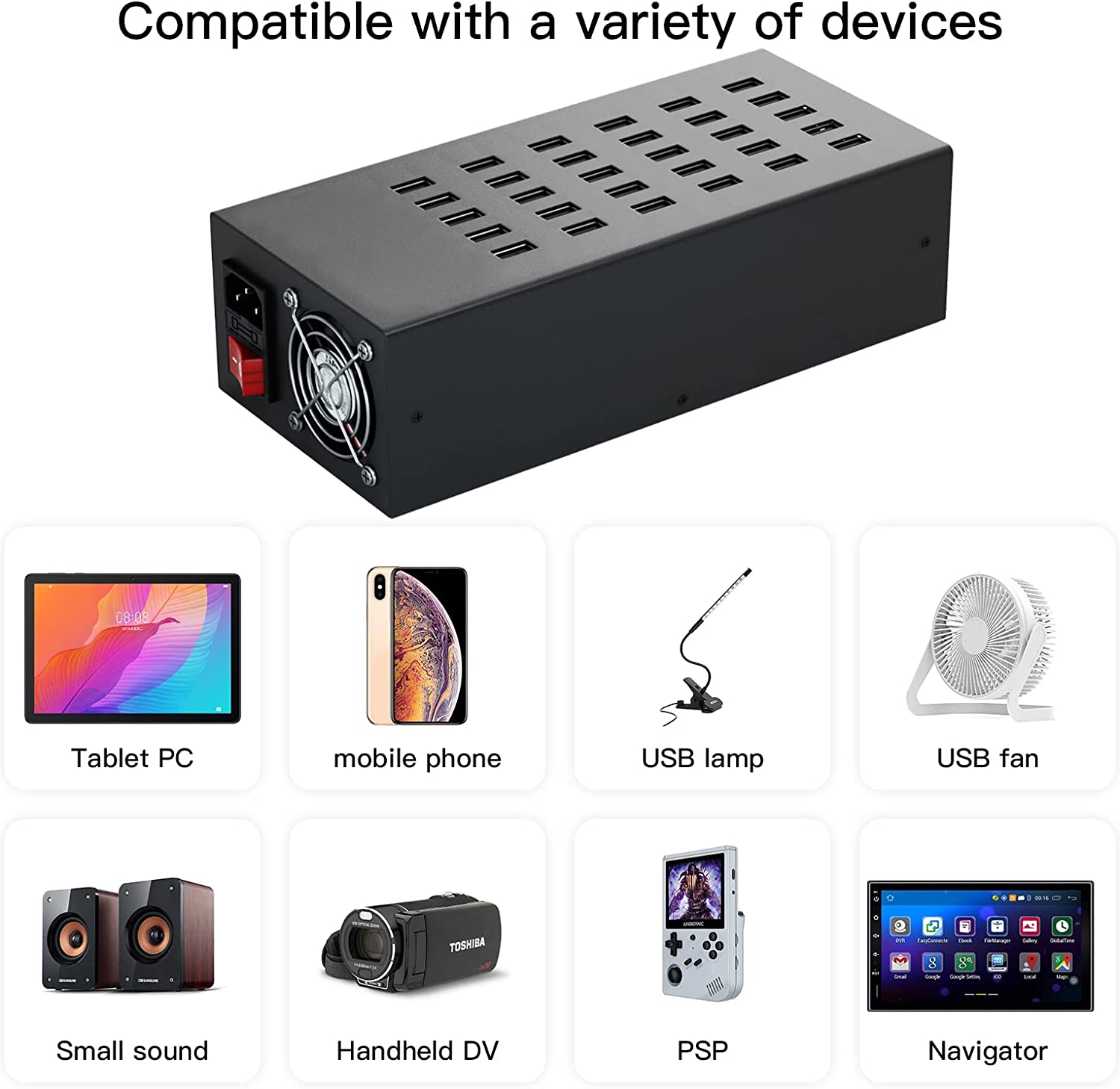 30 Fast 2A Charging Ports - Each interface of the charging station has an independent chip, charges up to 30 devices at once, Provides up to 5V2A of power per port. And to increase our charging speed.