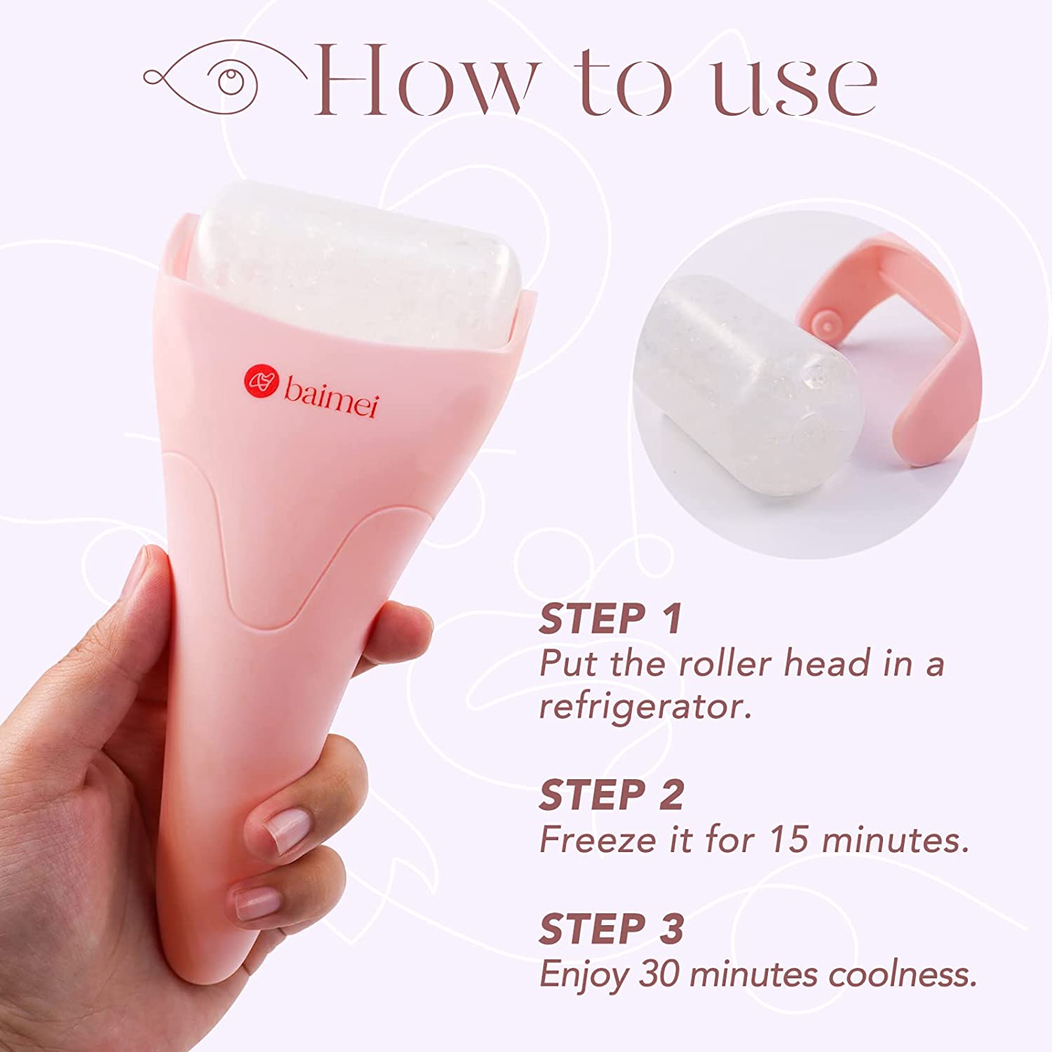 Ice Roller for Face and Gua Sha Facial Tools, BAIMEI Ice Face Roller Reduces Puffiness Migraine Pain Relief-Pink