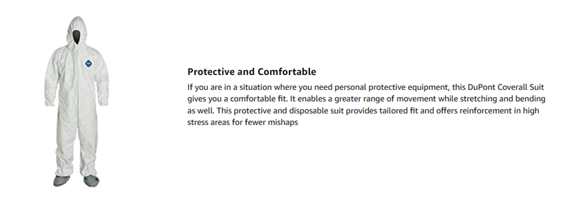 For applications such as paint spraying, mold treatment, lead and asbestos abatement or remediation, general maintenance or operations and general cleanup work, the disposable DuPont Coverall Suit stops hazardous particles away.