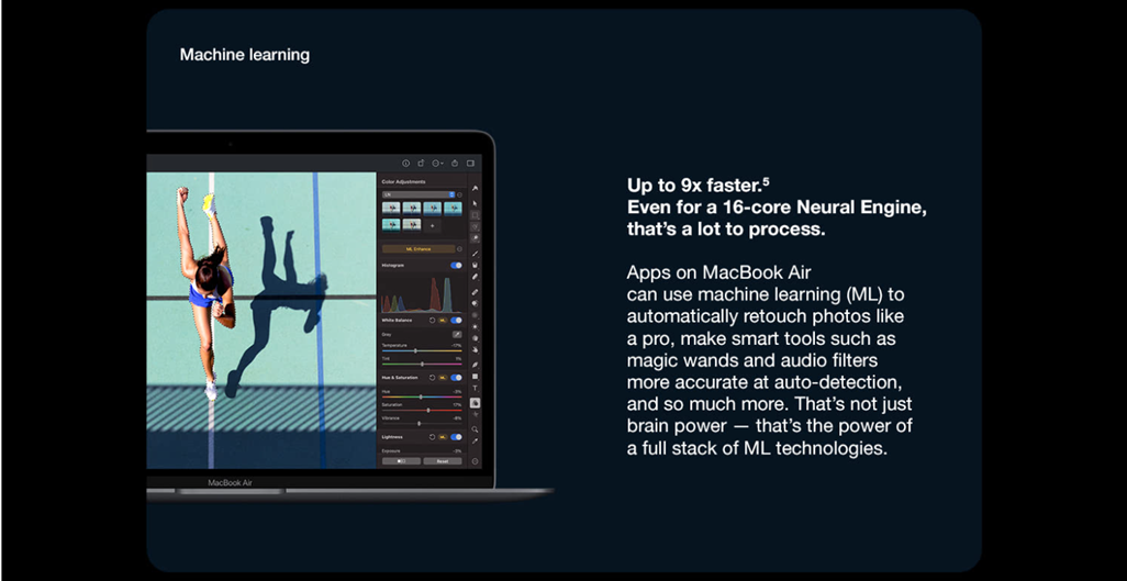 • Powerful Performance – Take on everything from professional-quality editing to action-packed gaming with ease. The Apple M1 chip with an 8-core CPU delivers up to 3.5x faster performance than the previous generation while using way less power.