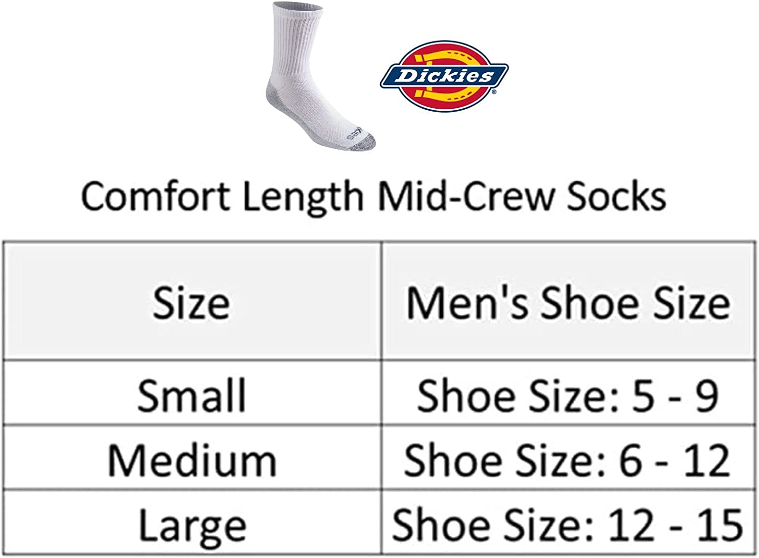 New Dickies Men's Dri-tech Moisture Control Comfort Length Crew Socks 6 and 12 Pairs with 70% Cotton blend better Fit and better value – Dri-tech Control Comfort Length Crew Socks Product, Engineered with Soft Breathable Moisture Control Fibers and Full Cushioned Footbed, Ventilation Channels Enhance Air Flow to Provide Rugged Durability and Comfort, Double Reinforced Heel and Toe, and Arch Compression Support & Stability.