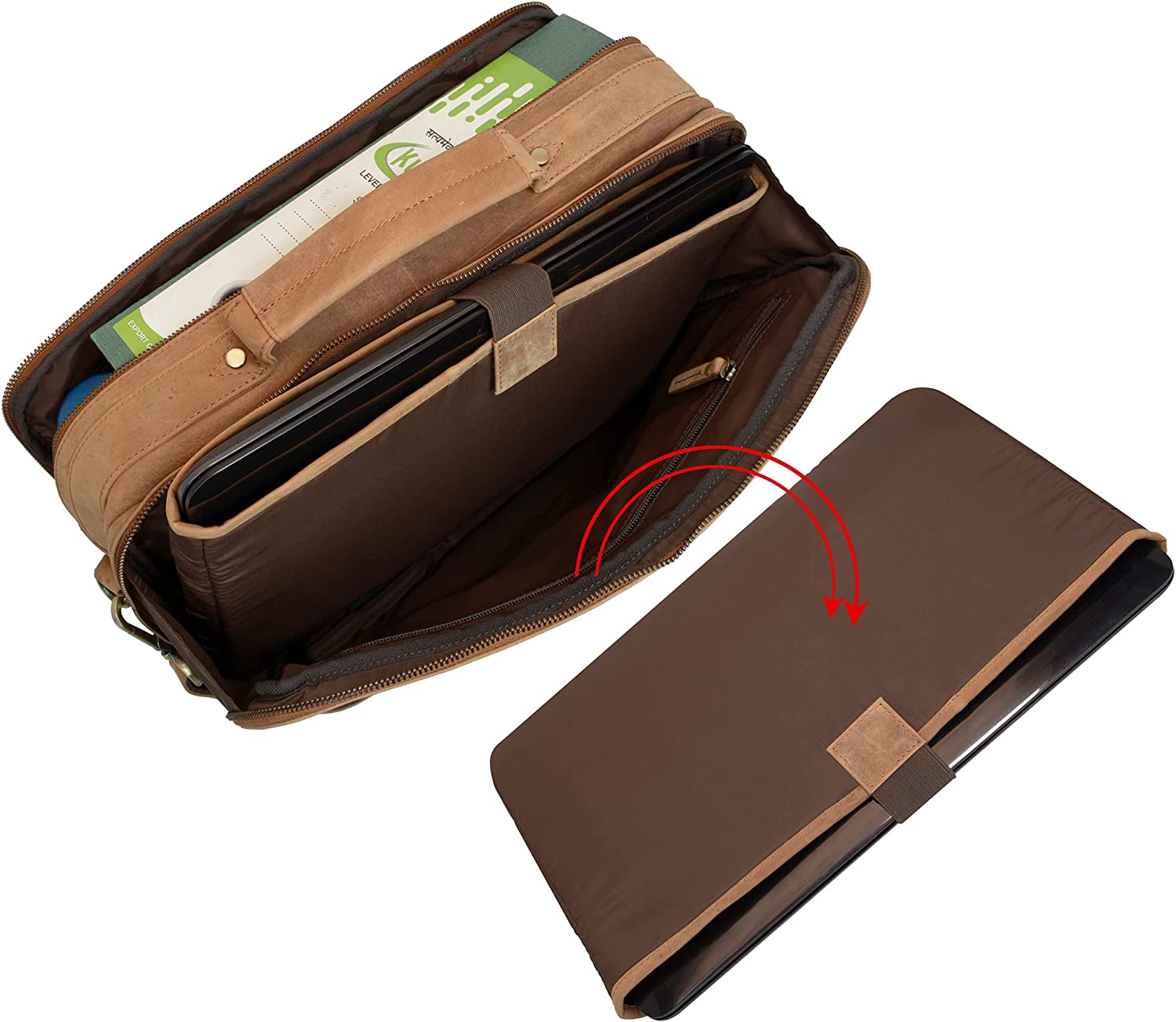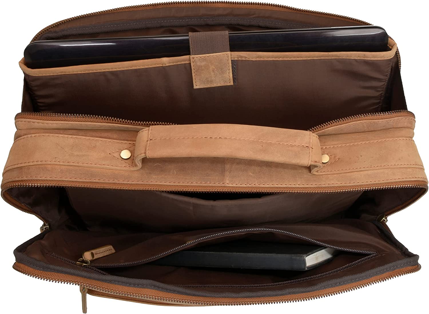 ✔ REAL HUNTER LEATHER BRIEFCASE : This classic Briefcase made of Cow Leather stands out at first glance with excellent workmanship, a unique feel, look and with modern character. We produce Hunter Leather by applying special kind of wax on the grain surface that gives an extra rich feel. This bag will become more attractive after use and will give a more unique and antique look with age.